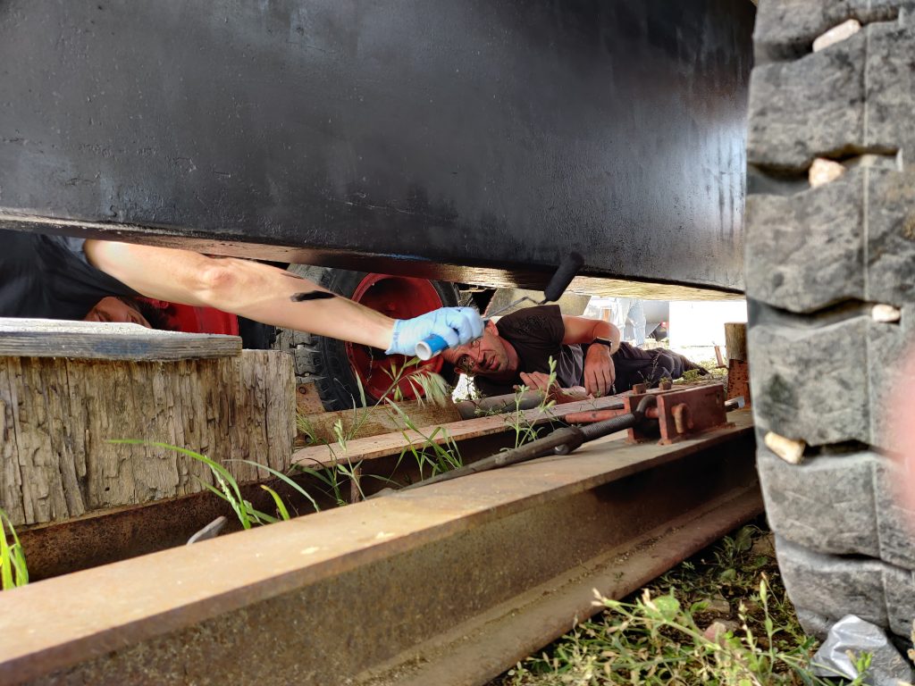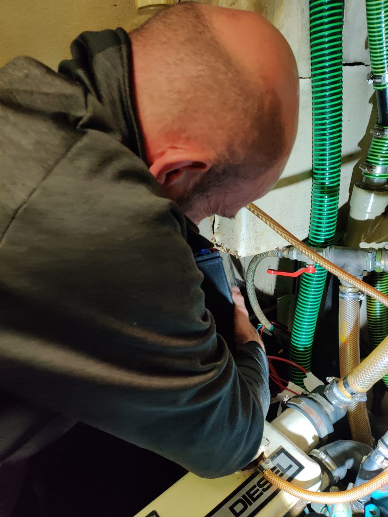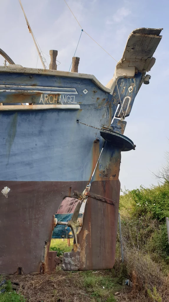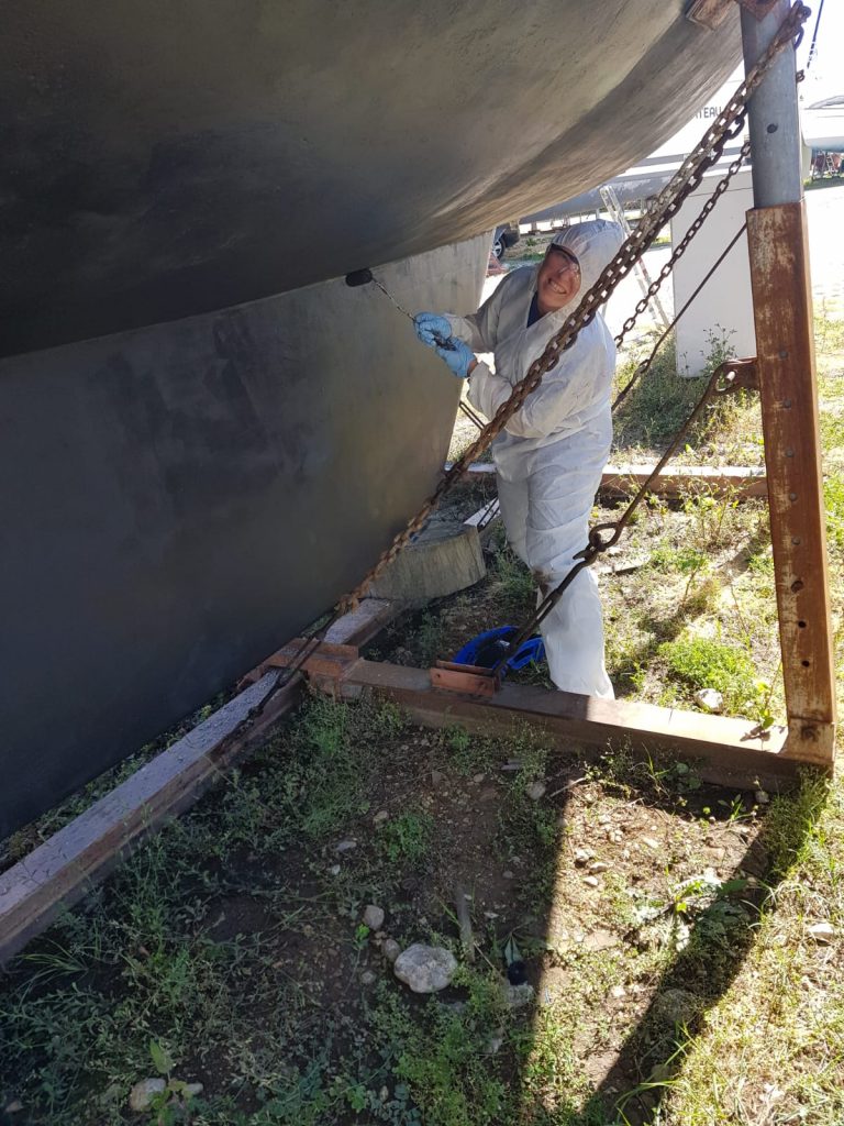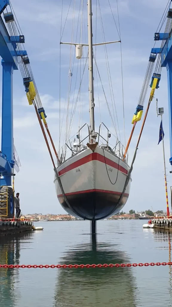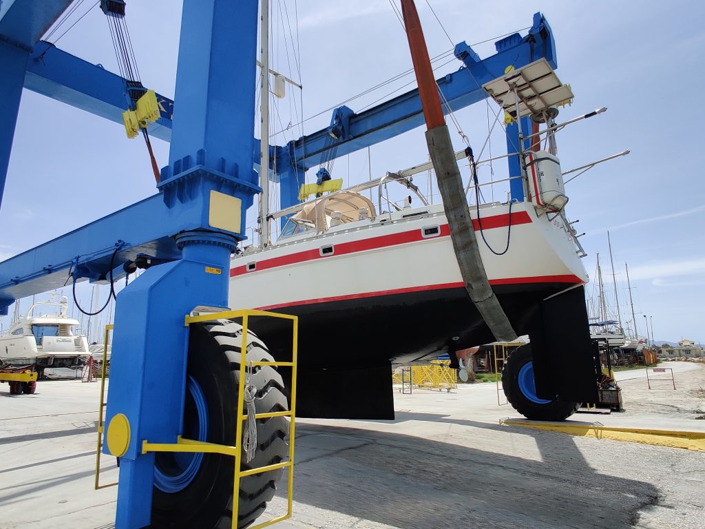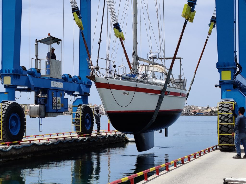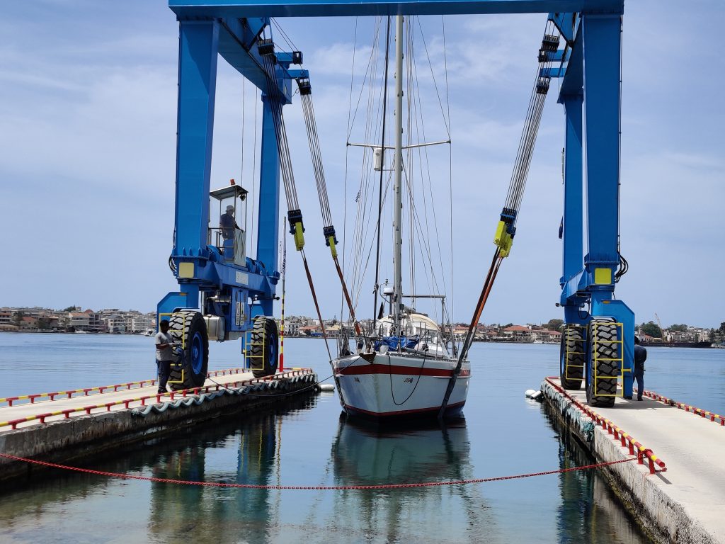 Dann muß unser Mädchen leider aus dem Wasser. Ich bin mir sicher, sie will das auch nicht!! Das war wieder sehr spannend, was die Jungs hier so an großem Gerät auffahren, um unsere 15 Tonnen aus dem Wasser zu holen.