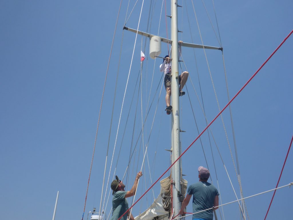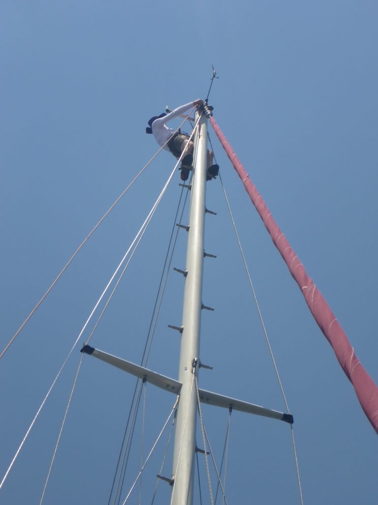 Skipper Jochen und Johannes sind dann nochmals losmarschiert, um eine Werkstatt zu suchen, die uns noch passende Anschlußkabel bauen. Da die vorhandenen Kabel zu kurz sind weil dummerweise die einzigen verfügbaren Batterien die Polung falsch herum hatten und zum anderen auch noch sehr „nicht vertrauenswürdig“ sind.