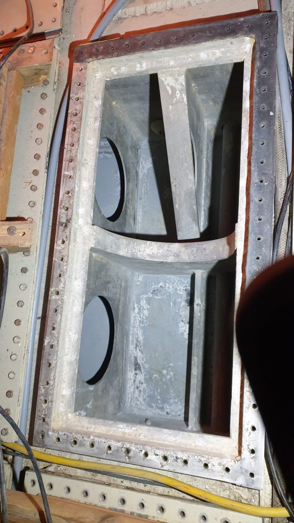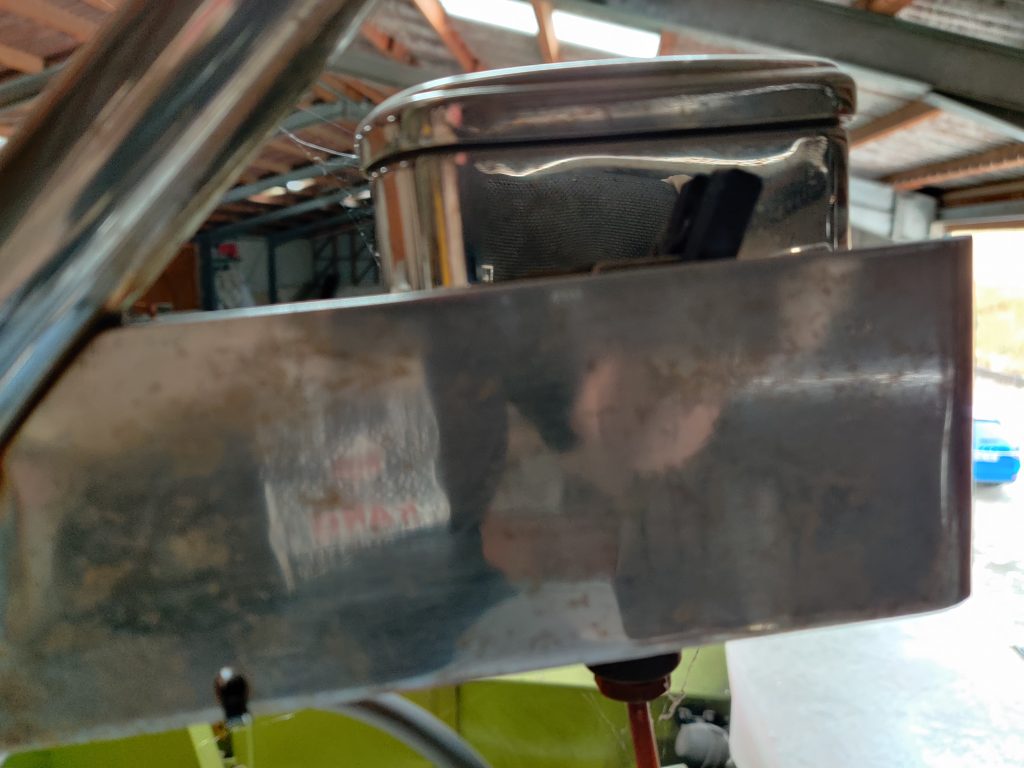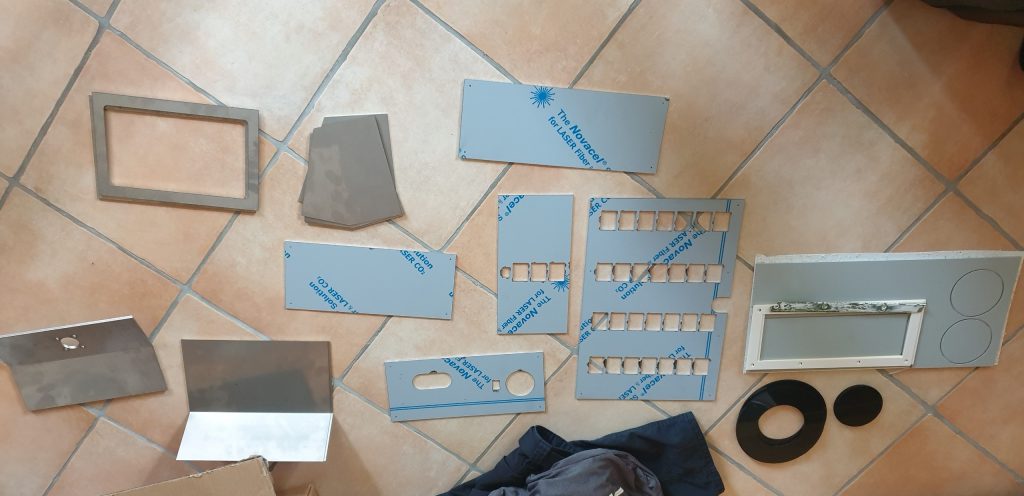 Unsere ganzen Schalter und Kontrollgeräte am Navitsch werden ja auch erneuert, und ähnlich wie bei den Leuchten passen natürlich die ganzen Ausschnitte im Holz nicht mehr. Wo nichts mehr ist, kann man auch nichts befestigen. Also auch hier, schöne Bleche anfertigen und die Löcher schliessen. Wenn Jochen schon in der Metallbearbeitung ist, hat er auch gleich noch unseren „Plotterkasten“ angefertigt. Wir wollen an unserem Steuerstand im Cockpit einen Plotter anbringen, der sich auch schwenken lässt. Hierfür benötigen wir ja eine Halterung, die natürlich vom Metaller korrekt gebaut wird.