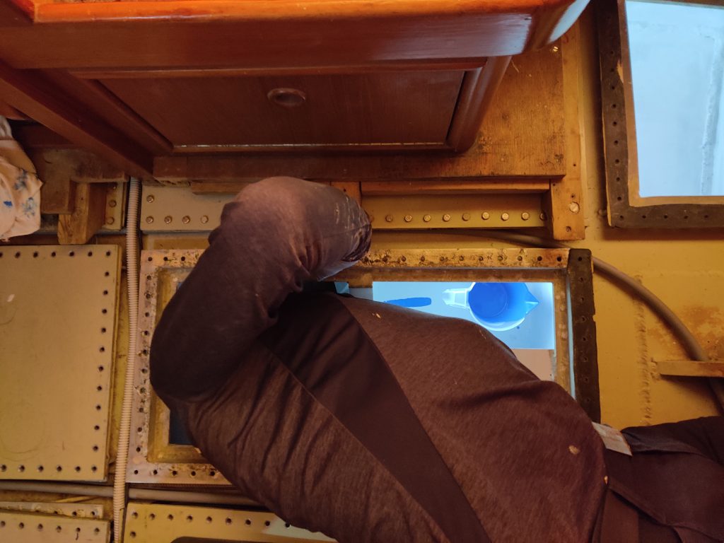 Da wir gerade bei den beiden Männern sind: da Jochen mit der Leerrohrverlegung hinter einer Verkleidung nicht so glücklich war, weil die gelegten Lehrrohre doch unsere Motorabluftschlauch ziemlich gequetscht haben, haben die beiden Männer entschieden: das machen wir noch mal neu und vergrößern die Löcher und ziehen die Leerrohre neu. Und schon war unser Arbeitsnachmittag an diesem Tag schon wieder rum – da vergeht die Zeit wie im Fluge und Johannes ist wieder abgereist. Danke nochmals für die Unterstützung.