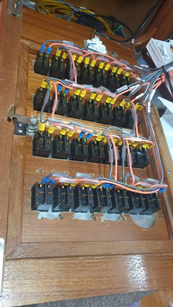 Die Elektrik schreitet voran, ja sind eigentlich schon im Groben erledigt. Die Arbeiten für den Anschluss der Batterien an die 12V-Stromversorgung sind fertig. Hier wird nun nicht mehr mit diesem „dünnen Tüttelkram“ rumgemacht, inzwischen sind wir bei dickeren Kabeln angelangt.