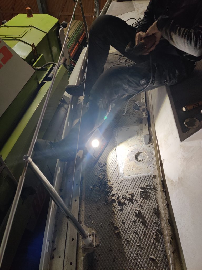 WIr haben uns auch an die Ausbesserung unseres Antirutsch-Deckbelages herangemacht, das war eigentlich so nicht geplant. Dieser wird nun stellenweise ausgebessern, um unseren Geldbeutel und unser Zeitfenster zu schonen. Daher die defekten Stellen in mühevoller Arbeit abschleifen.