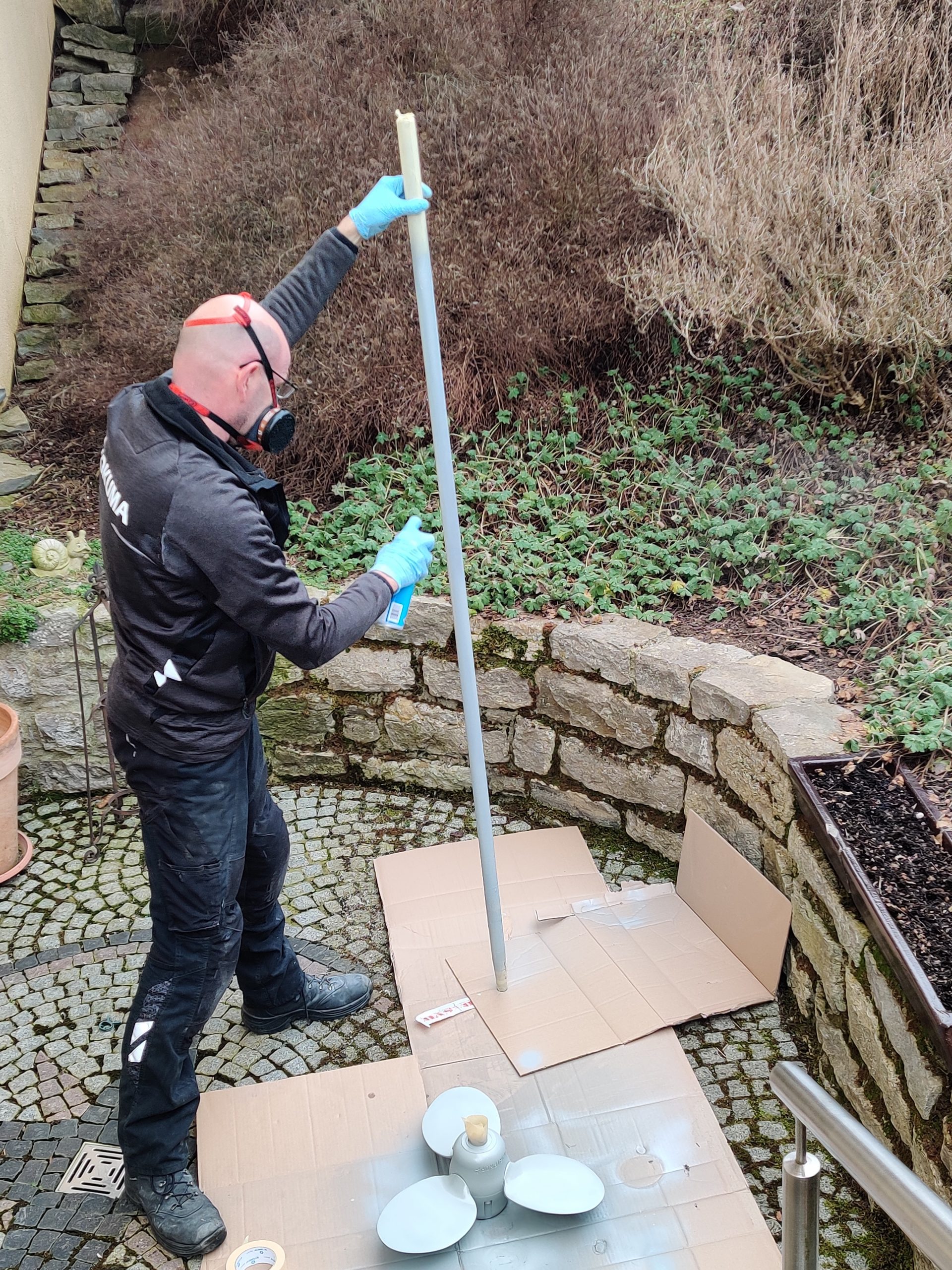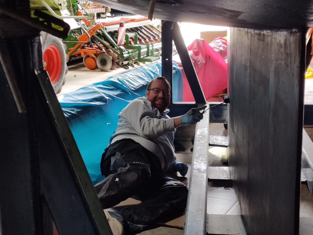 Dirk kümmert sich um kleinere Ausbesserungsarbeiten an den Holzeinbauten.