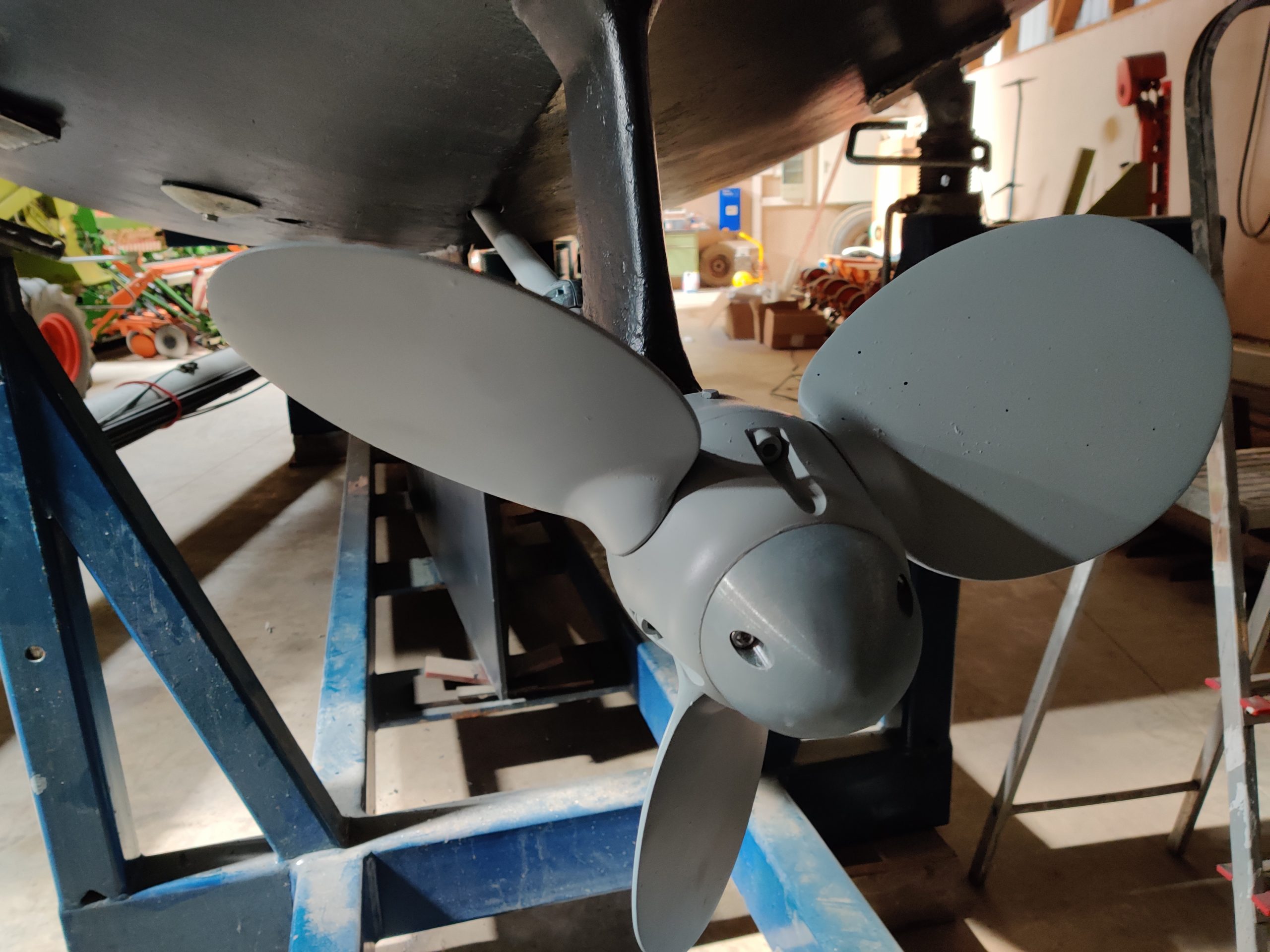 Die neue Schraube wurde grundiert und bekam ihr Antifouling und wurde auf die Welle montiert.