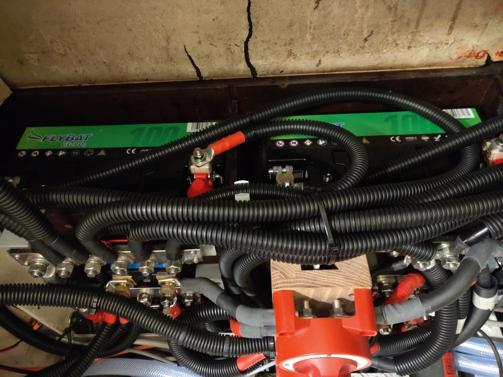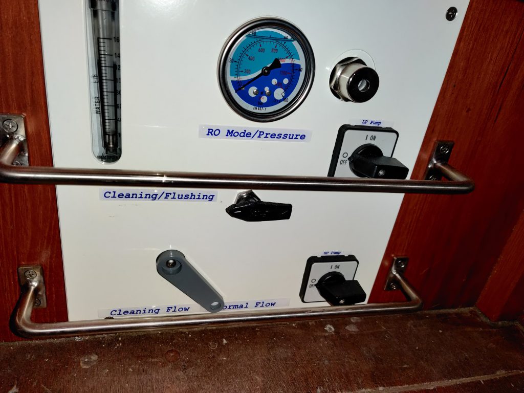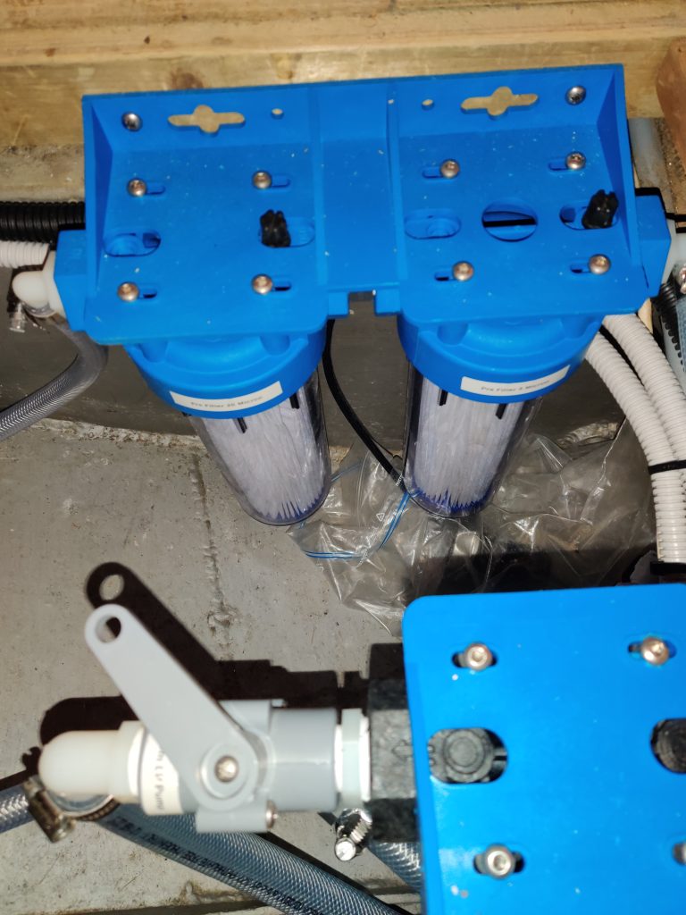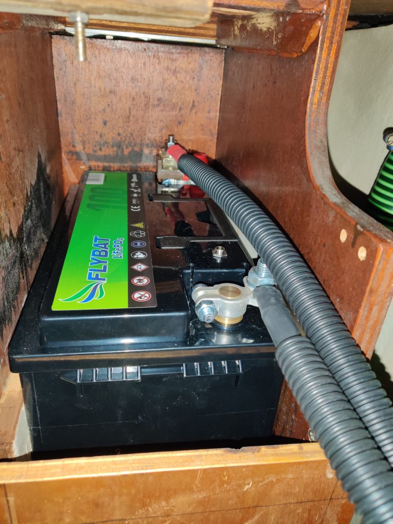 in den letzten Tagen hat unser Freund Martin, genannt Matscho unter anderem den Wassermacher elektrisch angeschlossen; die einzelnen Komponenten wie Filter, Membran und die Wasserschläuche hatten wir schon verlegt. Der Skipper hat die Batterien nun an ihren Stammplatz im Motorraum verbracht und auch diese angeklemmt.