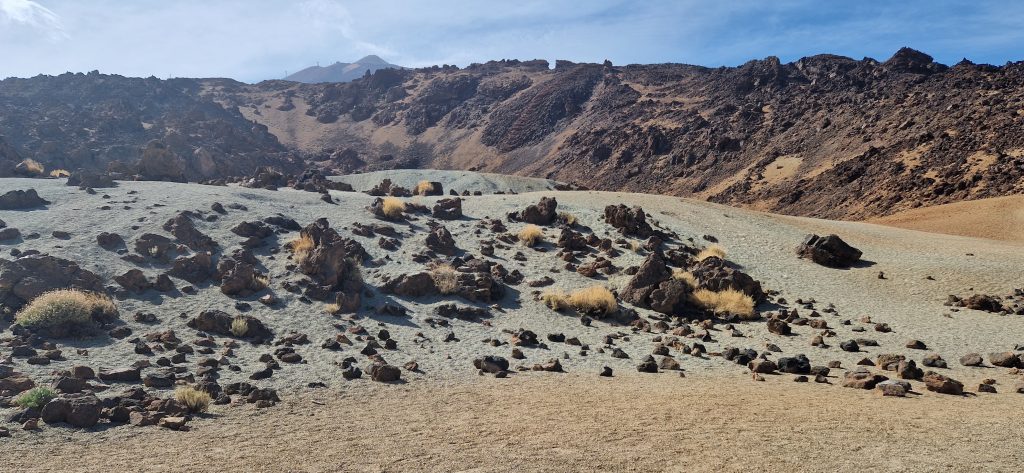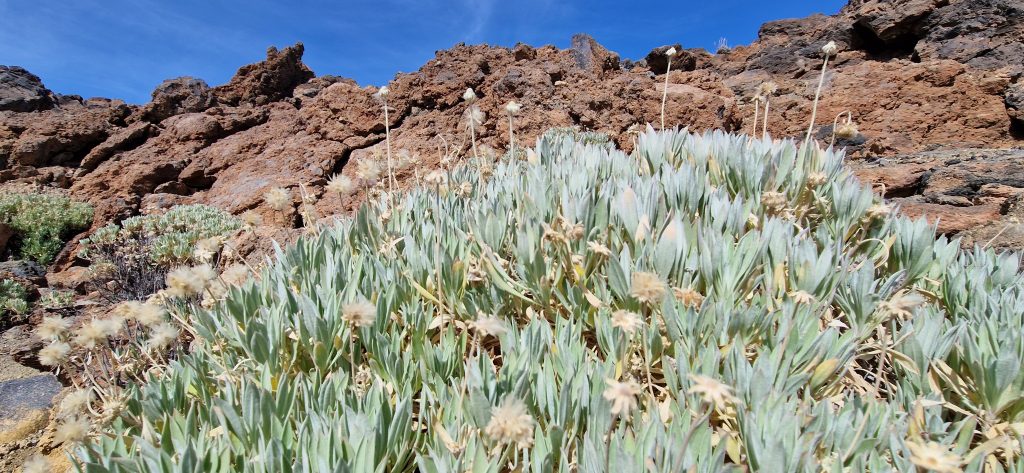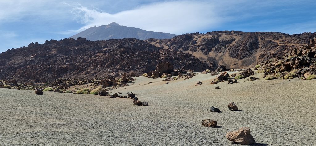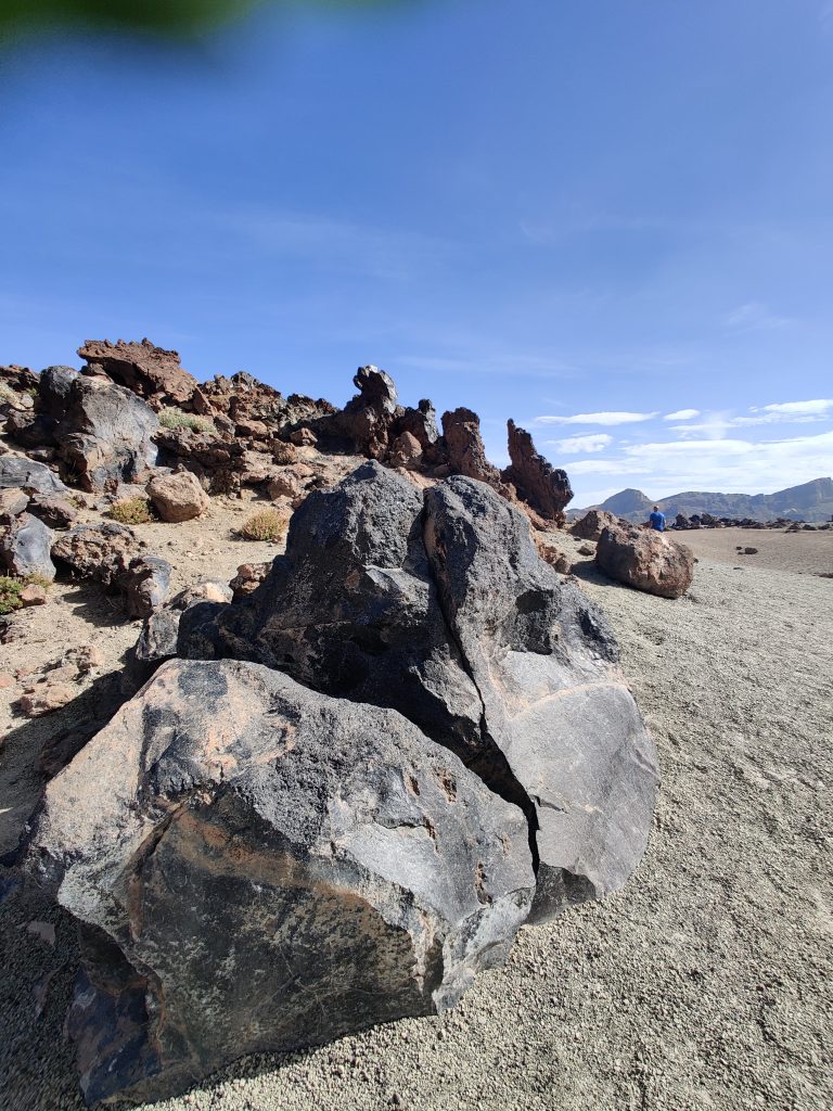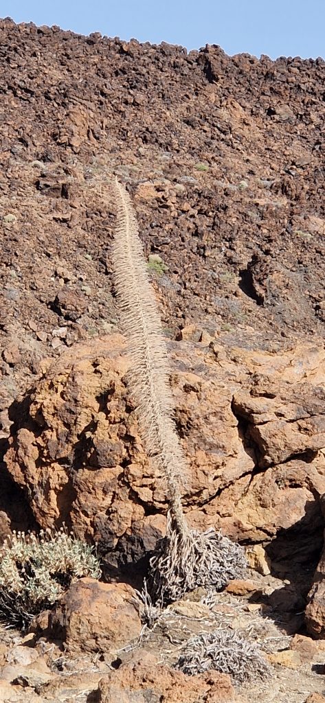 Wir haben jetzt auch schon einige Touren über die Insel unternommen. Zuerst sind wir mit unserem Auto quer durch den Teide-Nationalpark gefahren. Auf der entsprechenden Zufahrtsstraße sind wir durch das Waldgebiet gekommen, welches heuer im Frühjahr einen verheerenden Waldbrand hatte. Viele Bäume sind hier schwarz verkohlt – aber sie sind robust und werden sich wieder erholen. Lediglich das Unterholz ist leider komplett vernichtet und braucht seine Zeit, bis es wieder nachgewachsen ist.