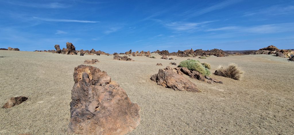 Der Teide Nationalpark ist einfach toll. Ich mag einfach karge Flächen, auf denen nur die Hartgesottenen wachsen. Kein Wunder, daß hier die Mondfahrzeuge ausprobiert werden und schon etliche Filme in dieser Kulisse gedreht wurden. Wir hatten das Glück, daß wir hier an einem Tag hochgefahren sind, an dem absolut bestes Wetter war. Kein in Wolken verhüllter Berg – alles klare Sicht.