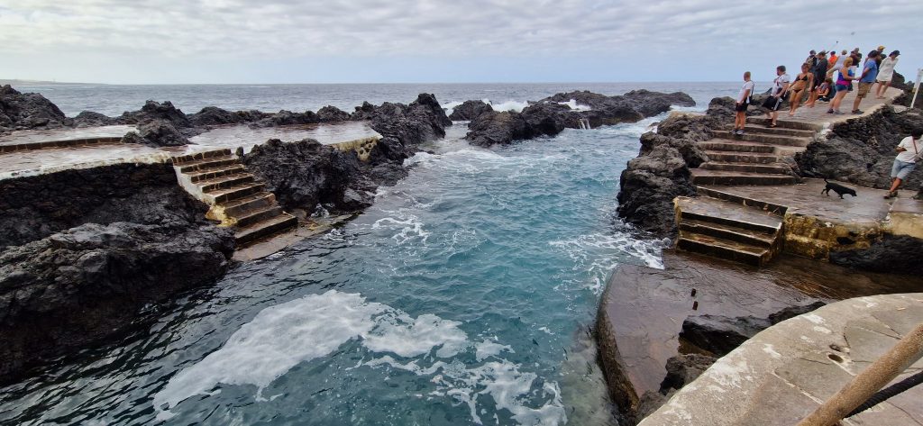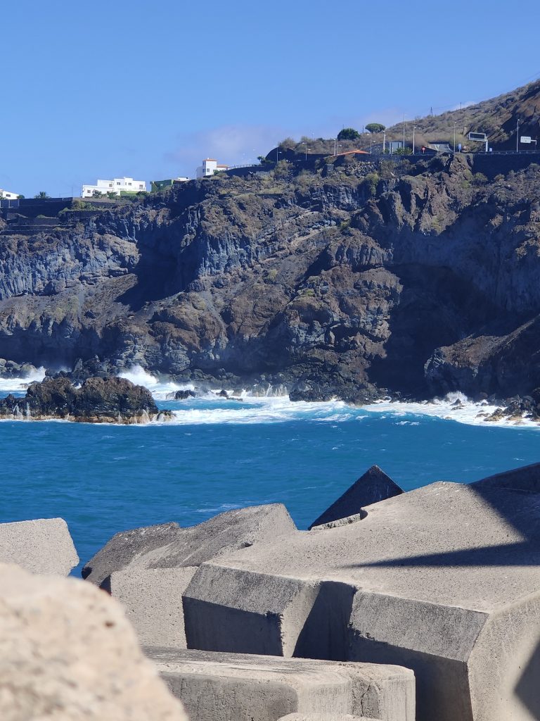 Geplant war ja, daß wir hier nur bis Dienstag im Hafen bleiben. Jedoch war für den gestrigen Sonntag extrem hohe Welle angekündigt. Diese sollte bis zu 6 Meter Höhe auf die Nordseite Teneriffas auftreffen. Es wurde im Örtchen auch alles darauf eingestellt. Das Naturschwimmbecken wurde abgesperrt, die Gastronomen direkt an der Mole haben ihre Bestuhlung sicher verräumt. Unsere Hafeneinfahrt ist bei so einer Welle nicht zu passieren. Hier wird empfohlen: nicht mehr als 1,5 Meter Welle und selbst das sehe ich sehr kritisch (bin halt ein Angsthase). Ergo können wir da am Dienstag auf keinen Fall raus. Frühestens am Mittwoch oder Donnerstag – also heute am Montag nochmals zum Hafenmeister. Unter Mithilfe von Andrea (wir haben zwischenzeitlich ein deutsches Nachbarboot 🙂 bekommen), die sehr gut spanisch spricht, wurde zugesagt, ja zwei, drei Tage gehen noch. Wir sollten aber Dienstag oder Mittwoch nochmals nachfragen. Nun schauen wir mal, was wir so rausschinden können.