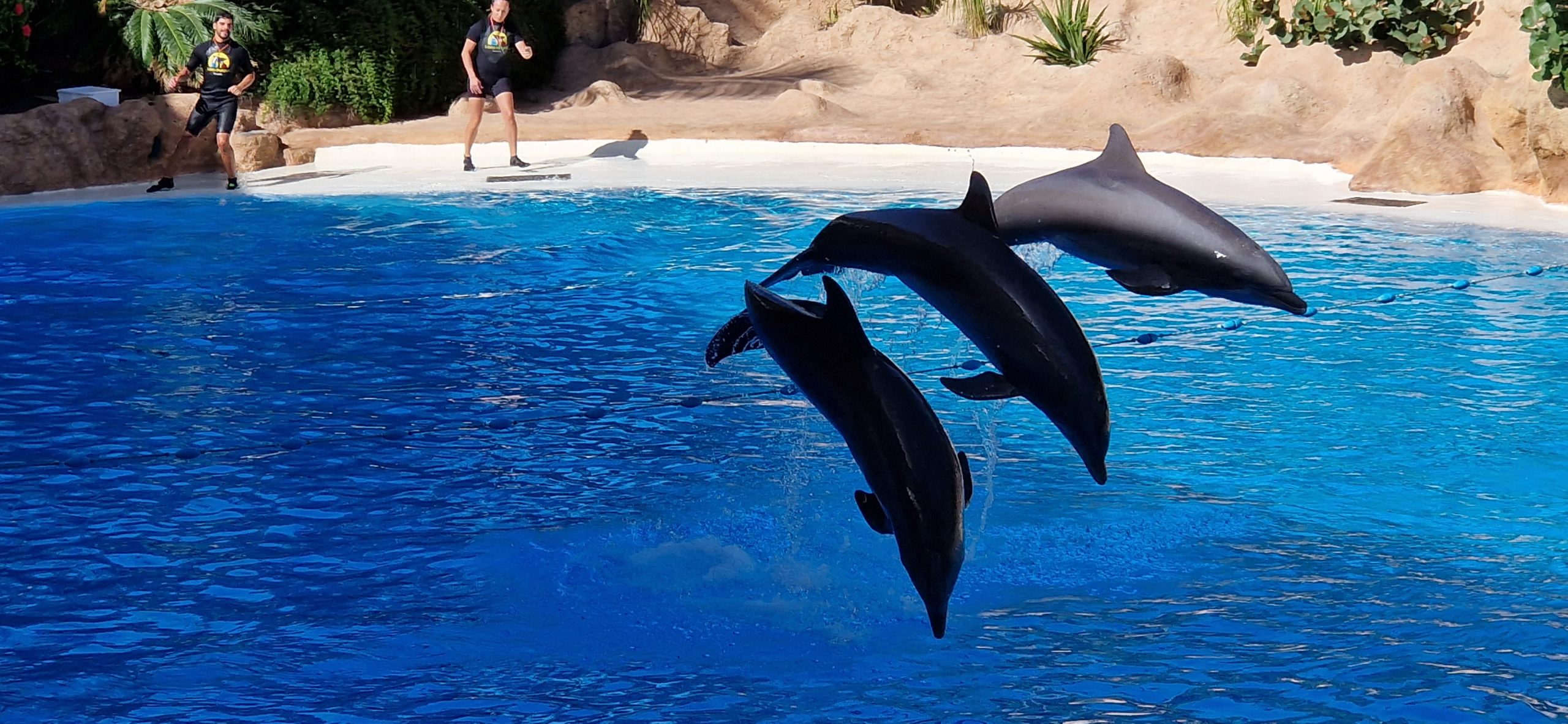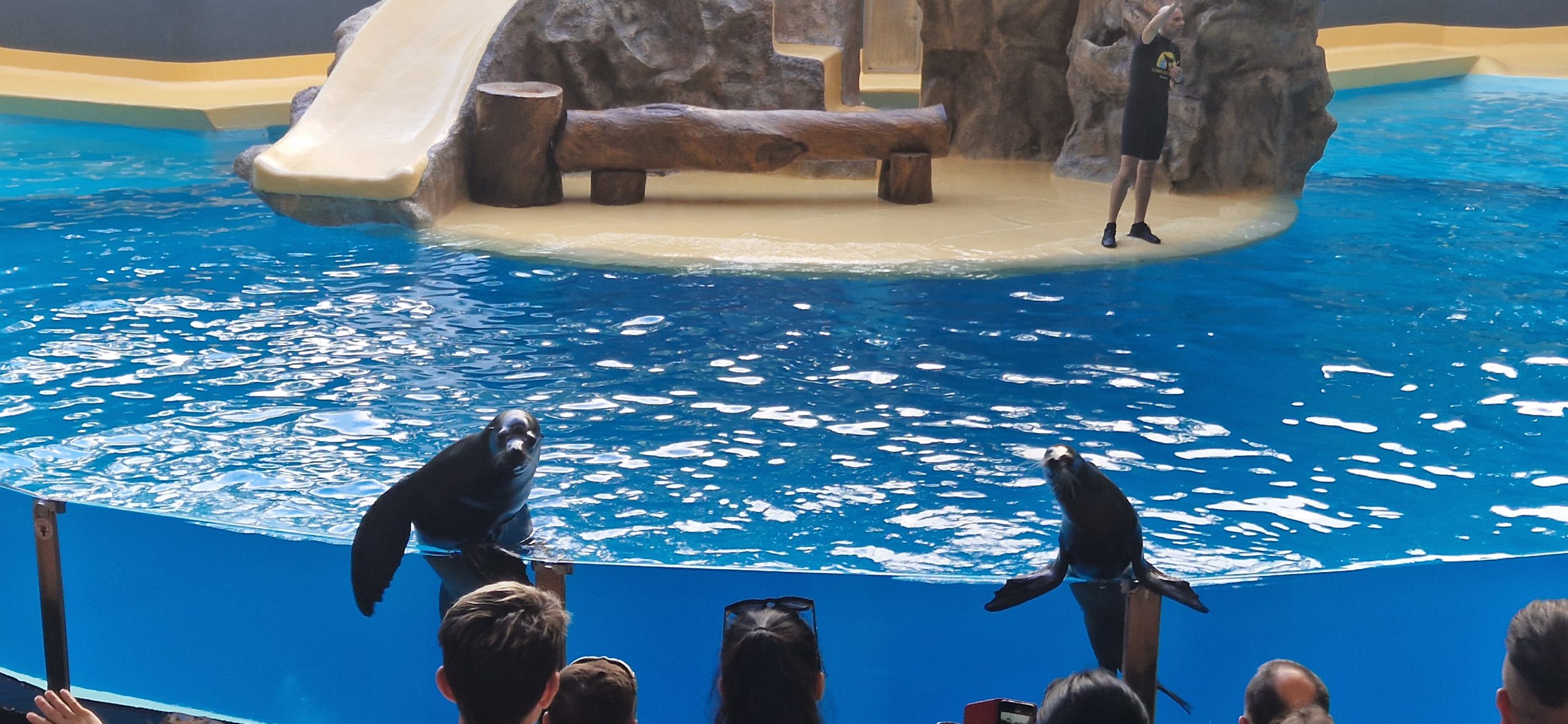 Ja – es war eine Delphinshow und eine Orcashow dabei. Aber nicht so, wie man es von Seaworld oder solch großen Tierparks kennt. Es war sehr gemäßigt, max. 20 Minuten mit vielen Videoeinspielern. So z.B. konnte man erfahren, daß die im Loro vorhanden Orcas bis auf eine Dame alle in Gefangenschaft geboren wurden. Die einzig „freie“ Orcadame wurde als Kalb alleine auf See aufgefunden, halb verhungert und kurz vor dem Verenden. Es wurde dann festgestellt, daß sie taub ist und daher ihre Familie und andere Wale gar nicht hören kann und entsprechend keinen Anschluss finden kann. Und nur durch die Unterbringung im Loro und Einbindung in das bestehende Rudel konnte ihr Überleben gesichert werden.