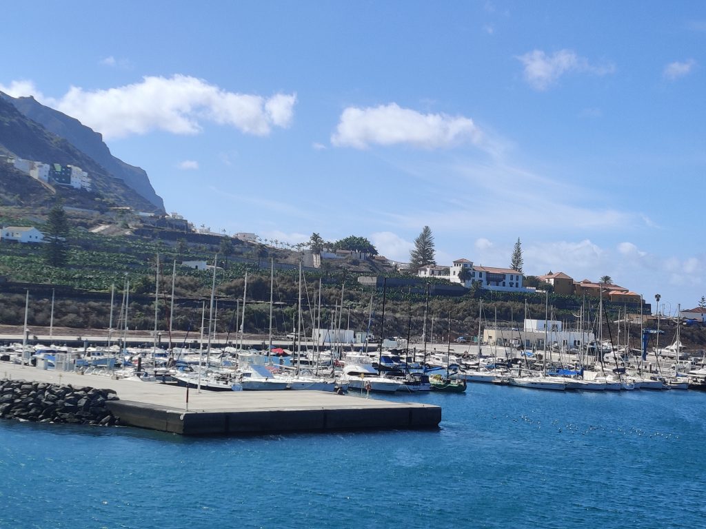 am nächsten Morgen ging es dann weiter in den Nordwesten der Insel. Wir hatten ja im Hafen von Garachico telefonisch (und mit Mailbestätigung danach) einen Platz für 6 Nächte reserviert. Laut Wettervorhersage sind wir davon ausgegangen, daß wir die gesamte Strecke unter Motor fahren werden müssen….