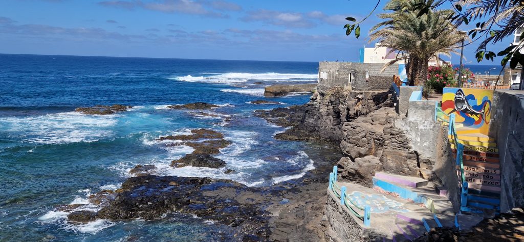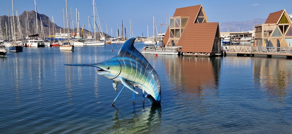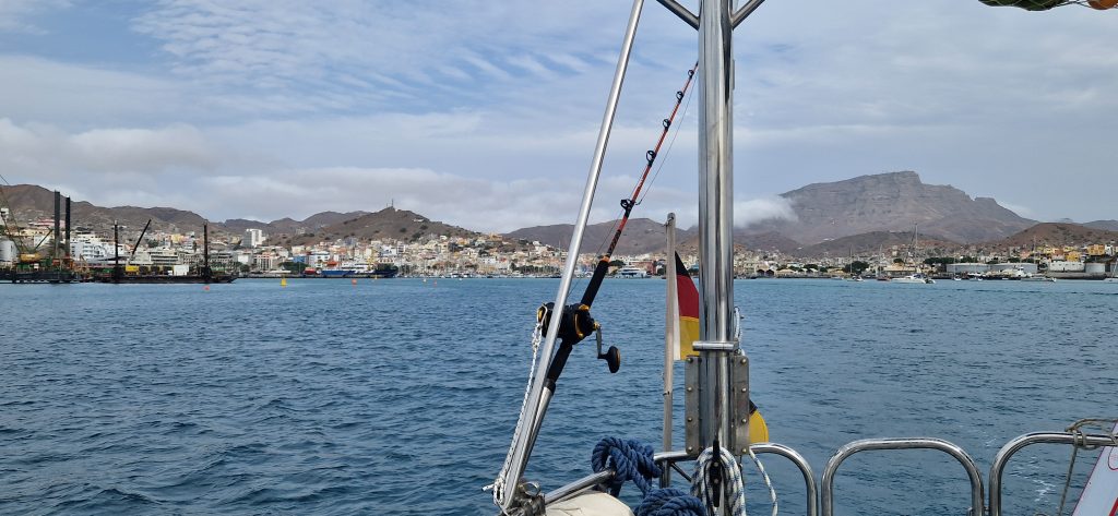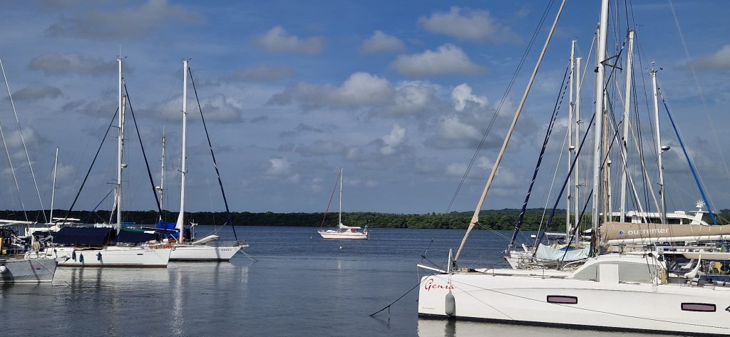 14 Sonntag: Kaum hatte ich die Zeilen gestern geschrieben, lies auch der Wind nach und hat seinen Beitrag zur Geschwindigkeitsreduzierung beigesteuert. Als in der Nacht dann eine Regenzelle auftauchte, wurde die „gewonnene“ Zeit aber wieder zu Nichte gemacht, auch wenn wir trocken geblieben sind, war der Wind erheblich. So sind wir dann doch letztendlich kurz vor Hochwasser vor der Einfahrt gestanden. Laut Empfehlung waren wir schon zu spät dran. Die Wellen an der Küste waren aber, trotz des nur leicht ansteigenden Meeresboden, erheblich, ankern hier und jetzt? Ein Blick nochmals in die Seekarte zeigt einen Ankerplatz auf halber Strecke in der Einfahrt. Also weiter, den sollten wir auf jeden Fall erreichen. Als wir dort waren, waren die Bedingungen an Gegenstrom noch sehr gut bzw. noch nicht vorhanden. Da wir jetzt auch die örtlichen Gegebenheiten sehen konnten, entschieden wir uns auch hier weiter zu fahren, zur Not können wir auch wieder umdrehen und eben dort ankern. So haben wir es dann auch bis zur Marina geschafft ohne Probleme. Als wir gerade vor der Anlage den Anker schmeißen wollten, kam uns schon ein Angestellter mit dem Boot besuchen und er unterstützte uns, an einer Boje fest zu machen. Im Anschluß hat er uns auch gleich mit zum Steg genommen, um uns im Büro anzumelden. Nach der Anmeldung und einem kurzen Hallo mit bekannten Booten wurden wir von der SY Margna (mit Cordula, Andreas, Felix) noch gleich zum Frühstück eingeladen. Anschließend brachte uns auch der Angestellte wieder zum Bot zurück, was für ein Service. Im Büro wurde uns von Nicolai ein Termin zum Festmachen am Steg für 11 Uhr vereinbart da hier die Strömungsbedingungen am besten wären. So konnten wir bis dahin noch das Boot vorbereiten, bevor wir dann um 11:30 Ortszeit Leinen fest hatten. Das Ende der Atlantiküberquerung war somit geschafft, nach 1622sm.