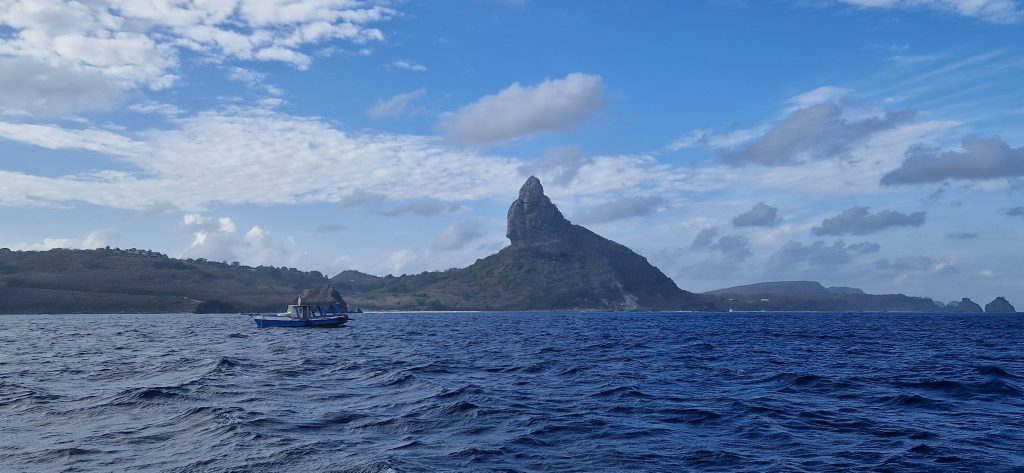 12 Freitag: Kurz vor 2 Uhr UTC erreichen wir die Insel „Ilha de Fernado de Noronha“. Eine Fahrt unter Motor durch das Anker- und Bojenfeld der Boote zeigt, daß es keinen Sinn macht, hier in der Nacht vor Anker zu gehen. Wir entscheiden uns vor allen Booten, Richtung See, zu ankern. Dieser fällt dann bei 25m Wassertiefe. Die Nacht wir sehr unruhig, der Ankerplatz ist schon als sehr „rollig“ beschrieben, aber hier, weit draußen… Am Morgen schauen wir uns das Ganze dann mal bei Tageslicht an. Wir versuchen Abzuwägen wie es weiter geht. Eigentlich wollten wir hier für ein paar Tage bleiben, aber bei so einem Ankerplatz und den sehr hohen „Naturschutzabgaben“ fällt die Entscheidung nicht sooo schwer. Die Insel ist wohl wunder schön, aber die Vernunft siegt letztendlich. Wir werden dann gleich weiter segeln Richtung Festland. So war dann um 15 Uhr, Anker auf und weiter geht´s. Schau´ mer mal, was so ein „Urlaub“ auf der Insel kostet, wenn wir auf dem Festland sind, schließlich machen hier sehr viele Brasilianer Urlaub. Vielleicht kommen wir nochmal zurück, dann aber mit einem anderen Fortbewegungsmittel.