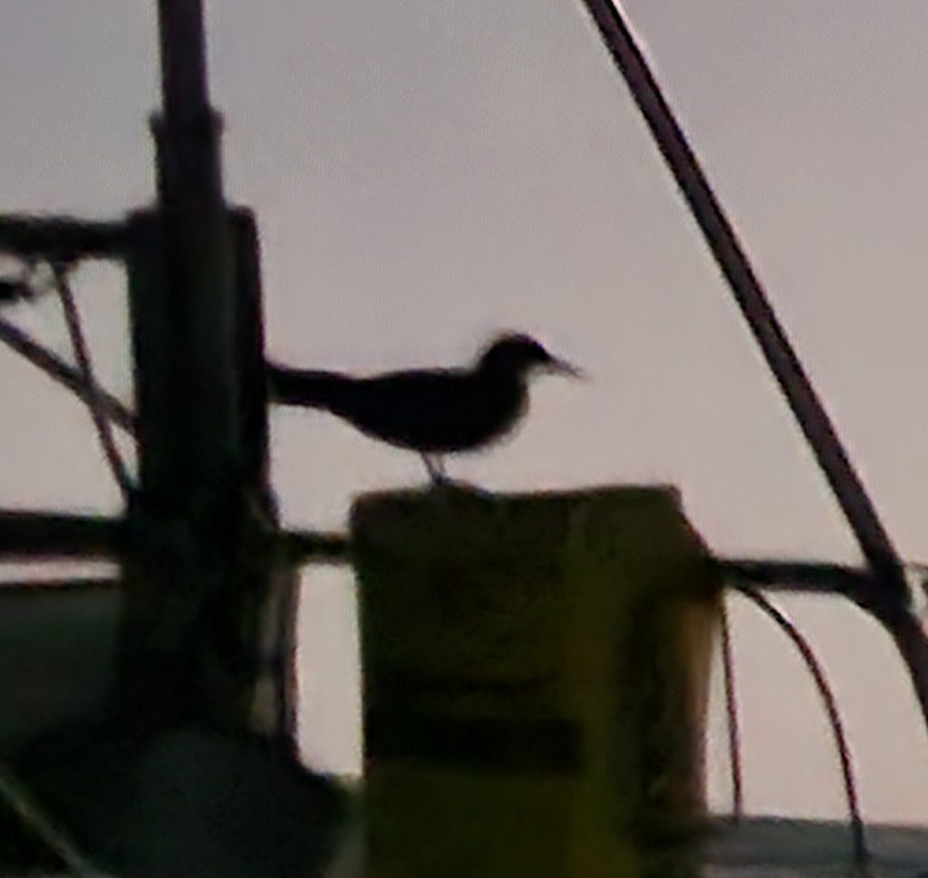 An dieser Stelle muß ich (Sabine) mal etwas über Karlchen erzählen. Wer ist denn jetzt wieder Karlchen? Der aufmerksame Leser hat vielleicht schon mitbekommen, daß Karlchen unser Windrad ist. Leider ist Karlchen nicht so effektiv wie gewünscht (ähnlich seinem Kompagnon zu Hause auf dem Dach), aber er bemüht sich. Zu Karlchen gesellt sich nun Möwi. Möwi ist eine Möwe, die uns schon mehrere Tage begleitet und regelmäßig unser Schiff umrundet. Ich bin ja der Meinung, daß Möwi ein Männchen ist und sich unsterblich in Karlchen verliebt hat. Skipper Jochen hatte schon Angst, daß Möwi Karlchen zu Nahe kommt und dann nicht nur Möwenfetzen, sondern auch Flügelfetzen unserer Rotoren fliegen. Tja, heute Nacht war es leider soweit. In meiner Schicht hat sich Möwi erst mal von hinten an Karlchen herangetastet. Nachdem das erfolglos blieb, meinte er, er müßte mal seitlich auf Tuchfühlung gehen. Was soll ich sagen, wie das ausging? Es gab ein kurzes Flap, dann sah ich einen Schatten abstürzen, der noch gekrächzt hat. Tja, Möwi ist nun wohl Geschichte und Haifischfutter. Aber Karlchen geht es gut und er hat keine Blessuren davongetragen.