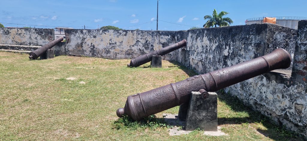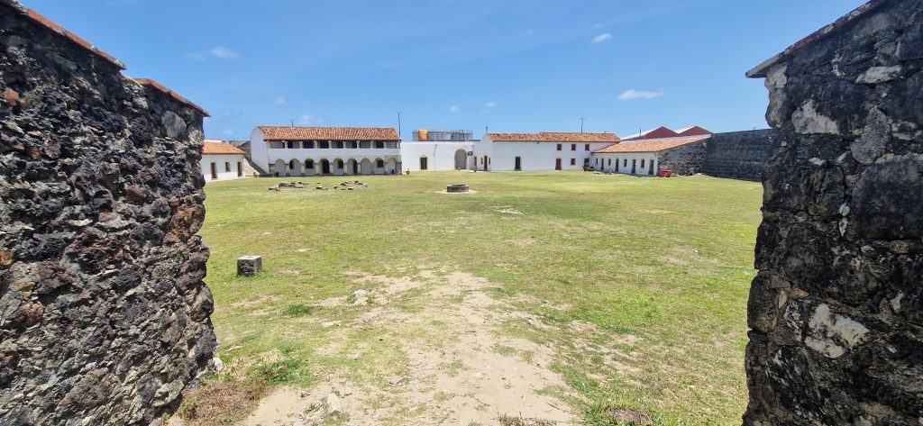 Inzwischen haben wir auch etwas die Gegend erkunden: wir sind mit dem Zug nach Cabedelo gefahren, haben dort das Fort besichtigt und auf dem Markt unser erstes Obst erworben. Aaah, frische Melonen und Ananas. Da wir meist unter Mittags in einem der Buffets essen (die Brasilianer essen eher mittags als abends), gibt es zum Abend häufiger nur mal einen Obstsalat. Das langt bei dieser Hitze aber auch.