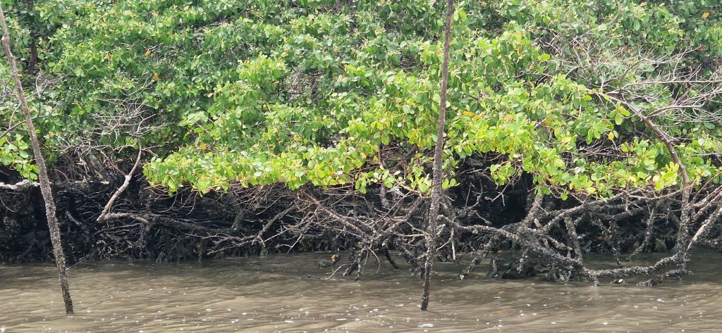 Ansonsten haben wir bisher noch nicht so viel angeschaut, da es echt verdammt heiß ist und ab 10 Uhr eigentlich nix mehr geht. Erst ab dem Spätnachmittag, wenn es dann schon wieder dunkel wird, ist es angenehm und gut auszuhalten. Was wir nicht haben, was aber alle denken: Feuchtigkeit. Hier ist es zwar heiß, aber nicht feuchtheiß. Jochen hat nach der Ankunft in der Marina mal vorsichtshalber nach einen Luftentfeuchter für das Boot gefragt und bekam zur Antwort: „Ich verkaufe Dir einen, wenn Du unbedingt willst. Aber Du brauchst das hier nicht“. Auch sind wir in einem Fluß mit Mangroven am gegenüberliegendem Flußufer – aber ein Mückenproblem haben wir auch nicht.