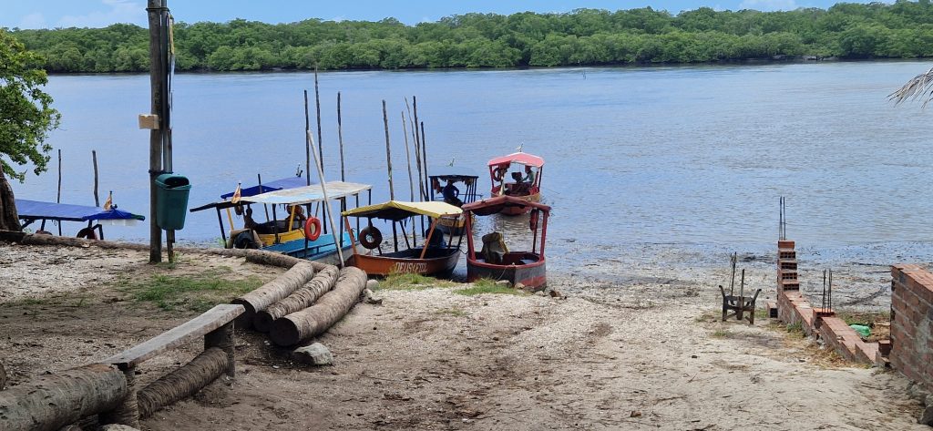 Mit der „Fähre“ sind wir über den Fluß auf die andere Seite nach Ribeira übergesetzt. Vorbei an den Mangroven zu einem kleinen Ort. Es sieht alles sehr idyllisch aus, wenn nicht überall der Müll herumliegen würde. Es stört die Menschen hier anscheinend überhaupt nicht, daß ihr Garten eine einzige Müllhalde ist. So eine tolle Natur ☹ Und auch hier wieder: Laut!!! Wir sitzen gemütlich am Fluß und schlürfen an unserem Caipirinha, als es plötzlich wieder laute Musik wummert. Hat nicht 50 Meter weiter jemand sein zu einer Box umgebauten Auto geparkt und dröhnt alles zu. Selbst, als wir noch etwa 2 km weit in die gegengesetzte Richtung laufen, hören wir die Musik noch deutlich. Unglaublich. Die müssen eigentlich alle taub sein.