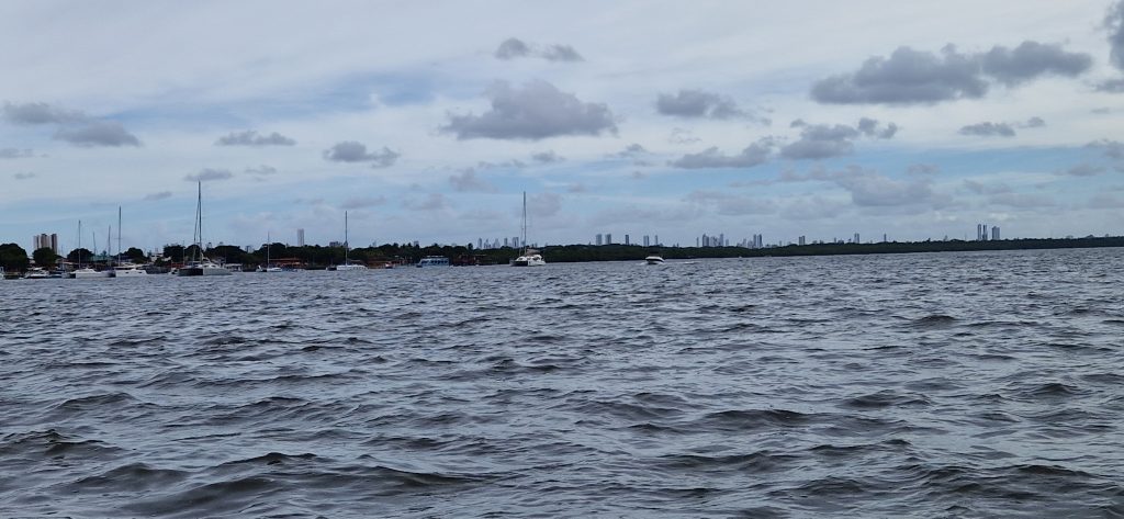 Die Marina hier ist klein und familiär und der Liegeplatz hier im Fluß Paraibo ist sehr ruhig ohne viel Geschaukel und Gezerre an den Festmacherleinen. Lediglich wenn wieder ein Brasilianer sein Motorboot im Fluß vorbeijagt, kommt hier die Welle an und es schaukelt etwas. Aber schlafen – ein Traum. Bettdecken und Co. wurden weggeräumt, die brauchts hier wirklich nicht. Das ist das einzige Manko: man schwitzt beim Schlafen 😊