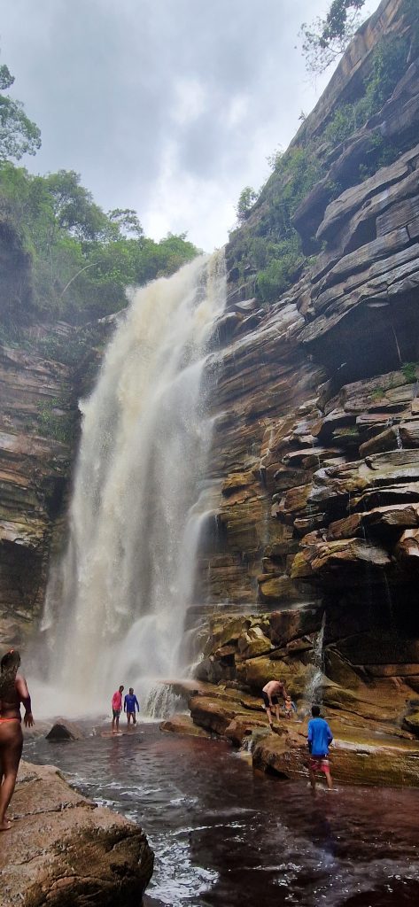 Unser erstes Ziel das wir mit dem Auto in Angriff genommen. Ein Wasserfall – der Cachoeira do Mosquito. Hierfür mußten wir mit dem Auto erst wieder eine Piste von 15 km Länge fahren, was Mike souverän gemeister hat. Natürlich wieder Eintritt! Hatten wir im Vorfeld recherchiert, daß wir hier 15 Reais/Nase zahlen mußten (Stand 2021), sollten es nun 60 Reais sein. Kurz diskutiert; jetzt sind wir schon mal da, dann zahlen wir das halt. Aber es hat sich gelohnt. Ein toller Wasserfall und eine tolle Autofahrt.
