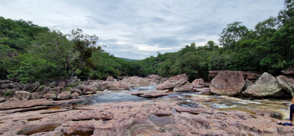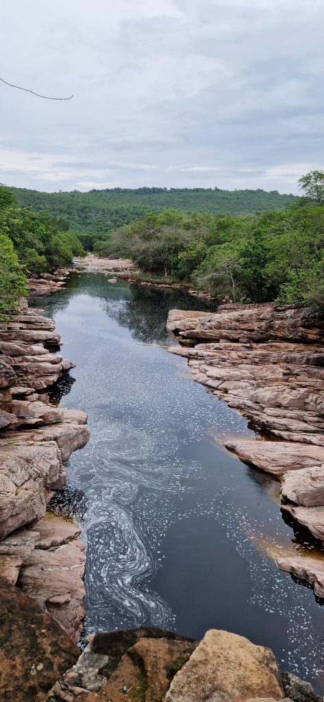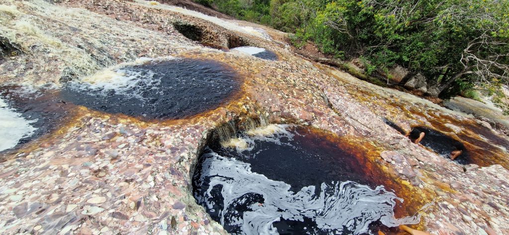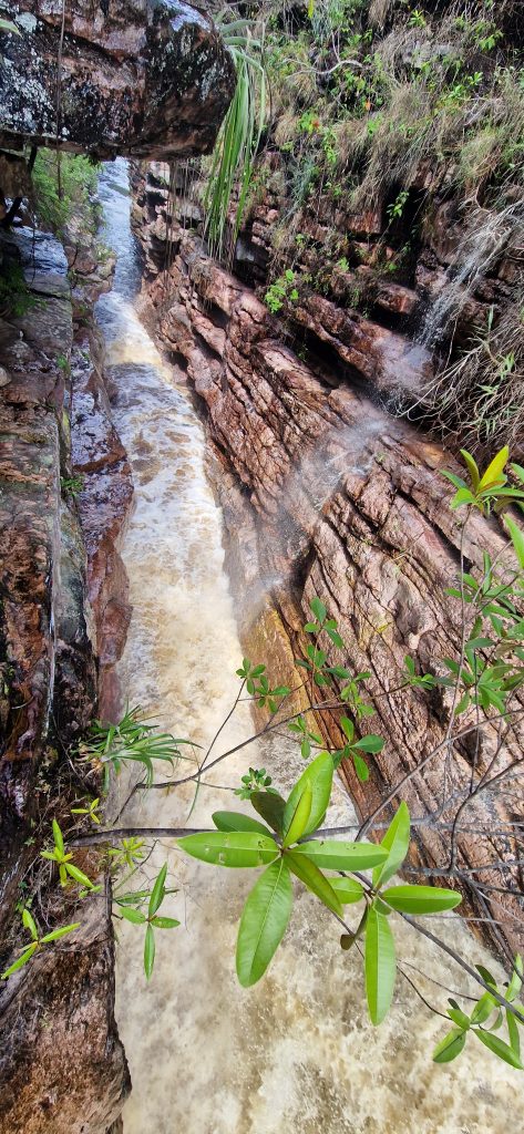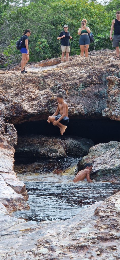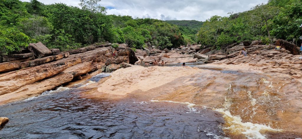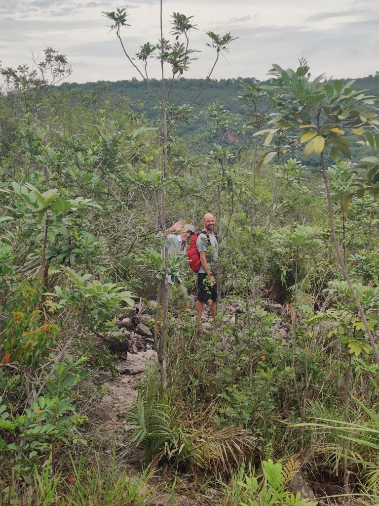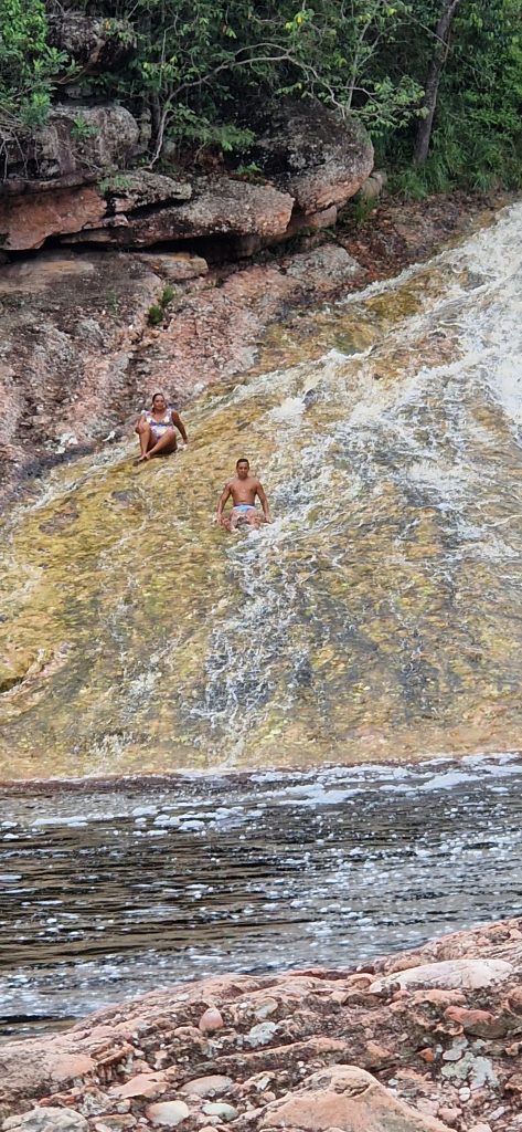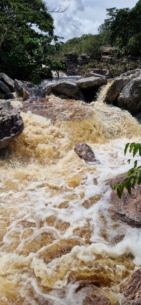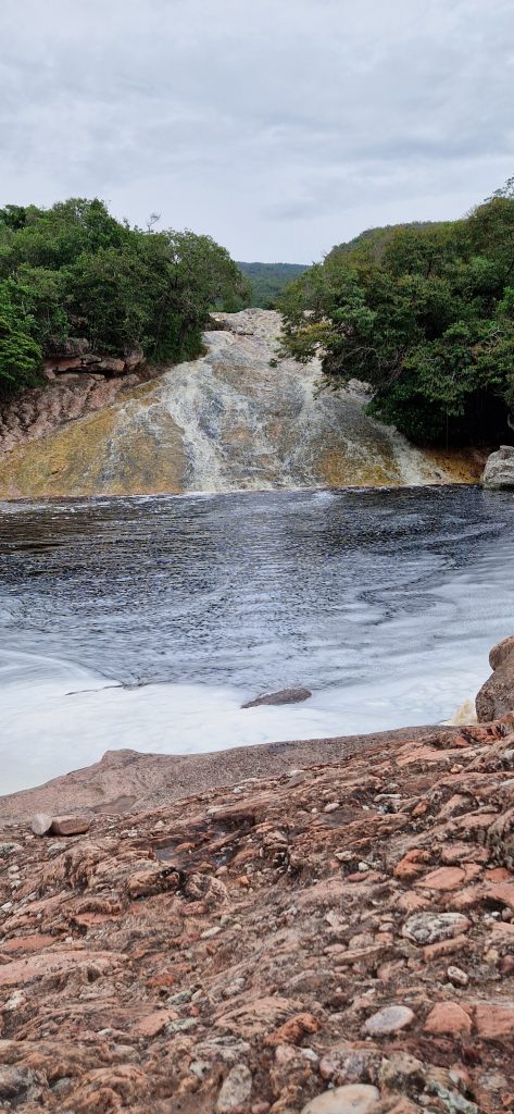 Neuer Tag, neues Glück. Kerstin muß auch heute wieder pausieren. Wir laufen zu dritt einen weiteren Weg hier in Lencois – diesmal ohne Eintritt. Wieder eine schöne Tour von 10 km zum Fluß „Ribeirào do Meio“. Ein Wasserfall mit „Naturrutsche“ und Schwimmbecken. Der Rückweg war dann etwas abenteuerlicher, da es am Hang des Flußes entlangging, und wir erst den Zugang zu dem Weg nicht gefunden haben. Echt toll. Unterwegs noch einen Einheimischen mit seiner Familie getroffen, der hochgelaufen kam und uns entsetzt fragte, ob wir den Weg kennen würden. Der wäre nicht so einfach!!! Das haben wir mal bestätigt, wir wüssten, wo es lang geht. Er kommt uns da mit Kindern und Enkeln entgegen, die teilweise in Flip-Flops unterwegs waren. Wieso sollten wir in Wanderausrüstung diesen Weg nicht schaffen?!?!? War auch nicht so wild, bis auf einmal falschen Weg nehmen und umdrehen – weil da geht es definitiv nicht mehr weiter.