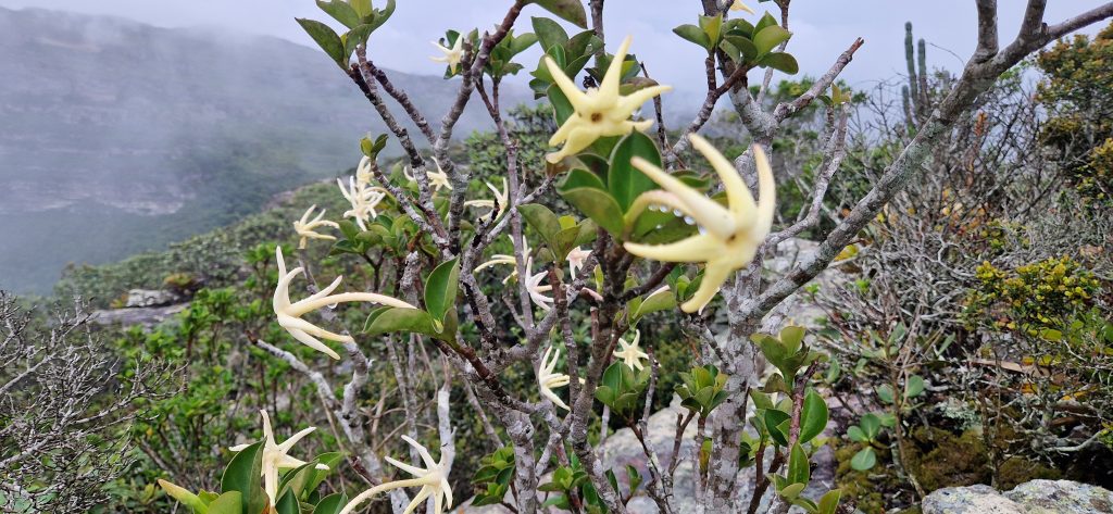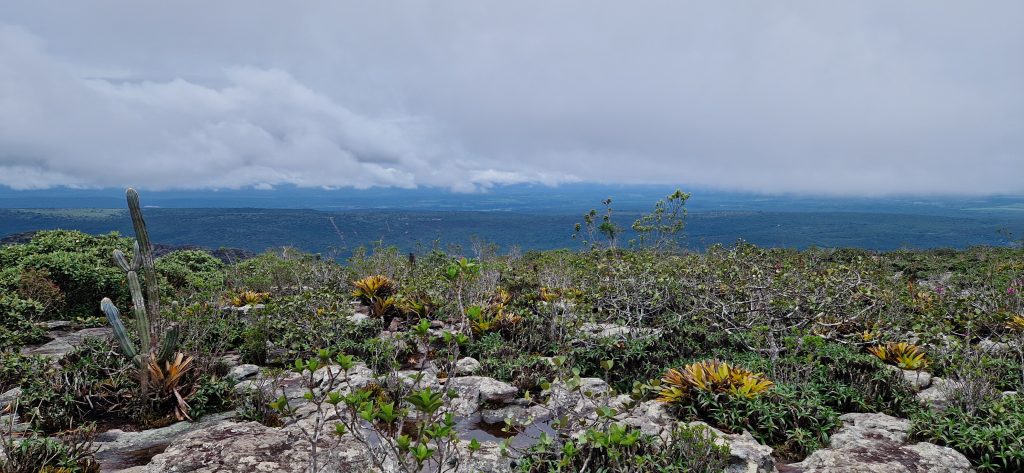 Als letztes Ziel haben wir uns noch einen Gipfel ausgesucht – den „Morro do Pai Inácio“ und danach denn Wasserfall „Poco do Diabo“. Hierfür mit dem Auto angefahren und was wohl? Eintritt. Bei bewölktem Himmel und noch leichten Regen (nach dem starken am Morgen) begonnen, den Berg hochzulaufen. Na, Sicht auf die umliegenden Berge werden wir wohl nicht haben. Wieder ein toller Weg den Hang entlang und oben ein Plateau, auf dem nach dem Regen viele, viele kleine Wasserbecken gefüllt waren und viele Sträucher, Bäume und Gräser wachsen. Und: an einem Eck ganz viele Orchideen. Und, was ist, wenn Engel reisen? Der Himmel reißt auf, die Sonne kommt raus und wir haben tatsächlich noch Fernsicht bekommen. Der darauf folgende Besuch am Wasserfall war dann sogar ohne Eintritt zu bekommen. Das hat sich doch echt gelohnt, daß wir bei dem Regen losgezogen sind und nicht in der Pousada sitzen geblieben sind.