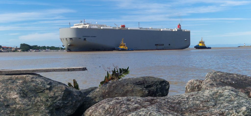 Es gab leider etwas „Funk-Chaos“ an diesem Tag. Beim Abfahren hat lange keiner geantwortet, so daß wir schon so weit waren, einfach loszufahren. Wir haben dann aber über den „Hafen-Kanal“ 09 die Erlaubnis bekommen, um dann weiter draußen mitzuhören, wie ganz viele Schiffe (Frachter, Tanker und Boote) ebenfalls versuchten, die Prefektura zu erreichen. Dies ging bestimmt eine halbe Stunde so, der Ton wurde immer rauher. Nachdem dann endlich einmal ein Boot seine Antwort bekam, hat jeder gleichzeitig versucht, wieder anzufunken. Das war sehr spannend anzuhören. Wenn man schon verpflichtet ist, sich ständig zu melden, dann sollte man auch eine Antwort erhalten. Ein Frachter wollte nur die Erlaubnis haben, an einem bestimmten Punkt den Anker fallen zu lassen; wobei die Ankerplätze für die großen Pötte, die sogenannten Reeden ja sowieso in den Karten markiert und vorgegeben sind.