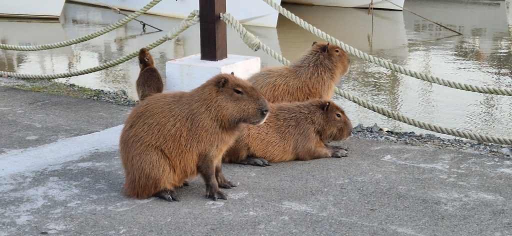 Die Prefektura hat dann geantwortet, daß sie jemanden schicken, aber daß das etwas dauern würde. Ja klar, 8 Uhr und Dienstantritt. Die kommen gerade alle erst. Wir konnten dann vom Boot aus sehen, wie sie das Motorboot auf dem Hänger an den Pick-Up angehängt und aus der Garage gezogen haben. Juhu, jetzt dauert es nicht mehr lange. Und siehe da, kurz die JOSA an das Schlauchboot gebunden und wir wurden schön sanft rückwärts aus unserer Lücke gezogen. Total entspannt.