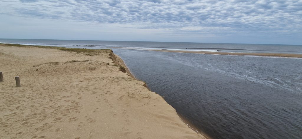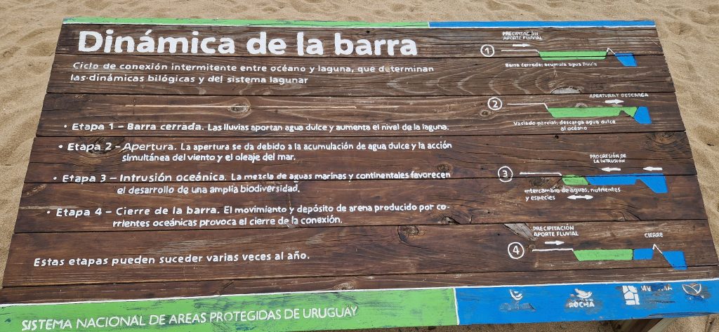 So war es auch. Wir wurden von den beiden eingeladen, gemeinsam die Laguna Rocha anzuschauen. Eine sehr große Lagune, die unter Naturschutz steht und hier 70 % aller heimischen Vögel zu beobachten sind. Die Lagune öffnet sich manchmal zum Meer hin bzw. wird bei zu viel Süßwasser nach langen Regenfällen geöffnet, so daß sich hier Süß- und Salzwasser vermischen. Als wir vor Ort waren, war die Lagune gerade wieder geöffnet und es war interessant anzusehen. Die beiden haben uns viel erklärt und gezeigt und ein kleines Picknick vorbereitet. Es war wirklich ein schöner Tag und wir haben wunderbare Menschen kennengelernt.