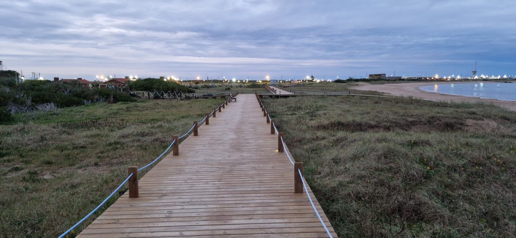 Natürlich sind wir gleich einmal in den Ort gelaufen, der ca. 20 Minuten Fußweg weg ist. Ein schöner Weg am Strand entlang über einen Holzsteg. Der Ort ist ziemlich leer und die meisten Läden sind geschlossen. La Paloma ist ein Touristenort im Sommer und daher im Winter ziemlich ausgestorben. Uns gefällt es trotzdem.