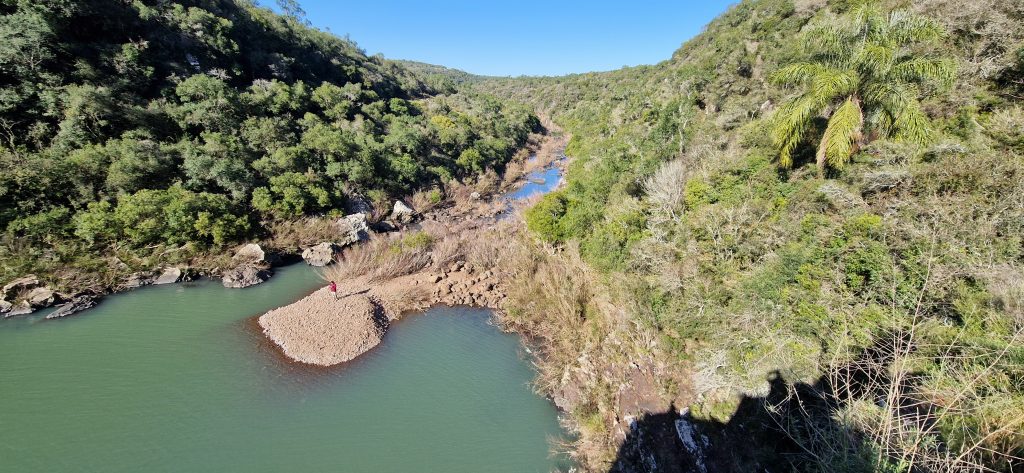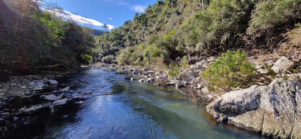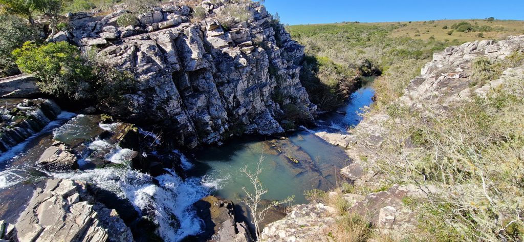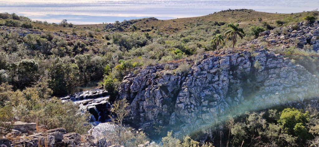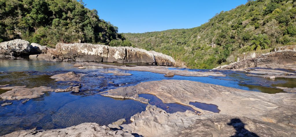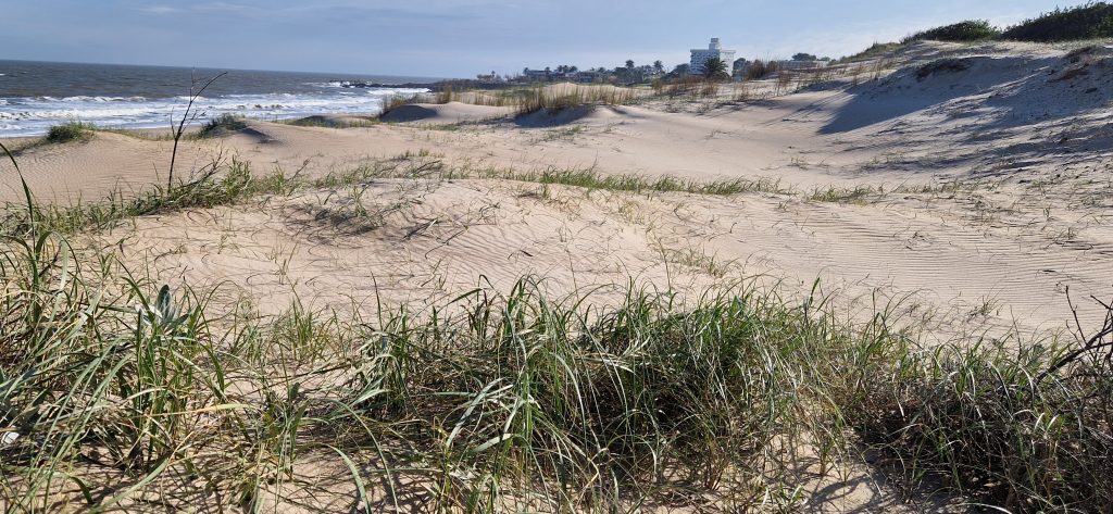 Heute geht’s nach Montevideo! Auf dem Weg dahin fahren wir zunächst noch an einen kleinen Fluß, den Riachuelo. Dies hat uns Jorge, der TO-Vertreter für Uruguay empfohlen, da er hier schon oft mit seinem Boot gewesen ist und es so schön wäre. Gesagt, getan. Und es ist wirklich nett. Im Fluß selbst waren ein paar Segelyachten vor Anker und es sah wirklich toll aus. Wir sind dann zu Fuß etwas in der Gegend herumgestreift und hatten hierbei Begleitung in Form eines sehr freundlichen, jungen Hundes. Er hat uns bei der Ankunft dort begrüßt und ist uns dann nicht mehr von der Seite gewichen und hat uns begleitet (besser: er war Jochen am Hintern geklebt). Sind wir mal in eine andere Richtung abgebogen als er beim vorauslaufen, da kam er sofort wieder von hinten angeschossen. Er hat es sicherlich auch einmal genossen, einen längeren Spaziergang von seinem „Haus“ aus zu unternehmen. Der Spaziergang war ein „wir kämpfen uns hier mal auf den Pferdepfaden durch“, aber sehr schön an alten Steinbrüchen vorbei, die mit Wasser gefüllt waren. Nur beim letzten Stück zurück mußten wir uns eine Lücke im Zaun suchen, um wieder in die Zivilisation zu kommen. Aber nachdem wir wieder kurz vor dem Parkplatz waren, wurde unser Begleiter sehr schnell. Ah, er kennt sich wieder aus und hat sein Spielzeug geschnappt und weiter rumgetobt. Wir haben für uns nun auf dem Schirm, hier eventuell nochmals mit dem Boot hereinzufahren und ein paar Tage vor Anker zu liegen. Mal sehen.