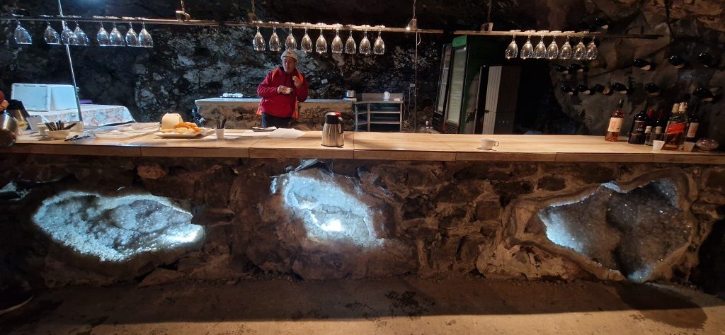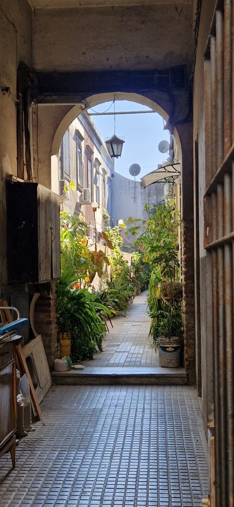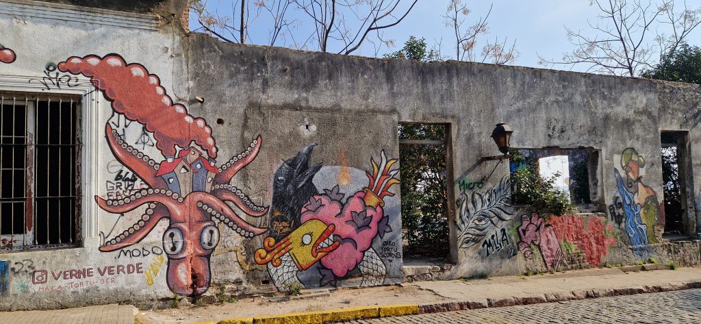 Weiter ging es nach Montevideo. Hier wollen wir ja Jorge auch nochmals treffen, da er hier lebt und auch sein Boot liegen hat. Jochen hat dann beim Suchen einer Unterkunft zufällig ein kleines B & B gefunden, das wir dann angefahren sind. Und wirklich, sie hatten noch ein Zimmer frei. In einem alten Kolonialhaus mit hohen Zimmern, wunderschönen Holztüren und total liebevoll hergerichtet. Das Zimmer war zwar winzig und man stand direkt vor dem Bett, wenn man die Tür aufmachte, aber so schön. Viele alte Möbel und Dekorationsstücke. Starke Farben an den Wänden und schöne Bilder. Das einzige Manko wieder mal: diese Alufenster isolieren halt so gar nichts. Also wieder Klimaanlage voll aufdrehen und laufen lassen. Aber wenn die Wände halt mal kalt sind, dann sind sie kalt!