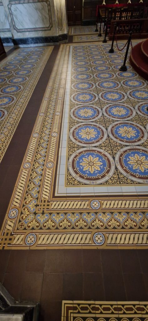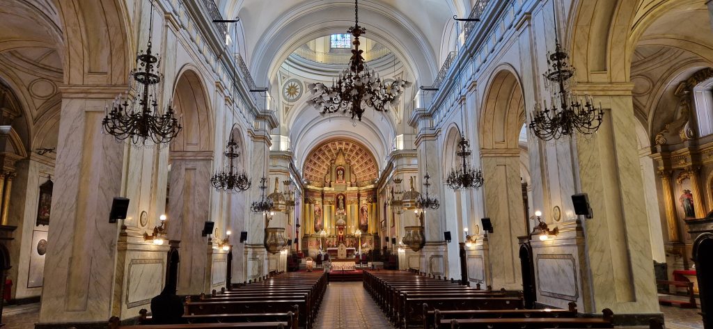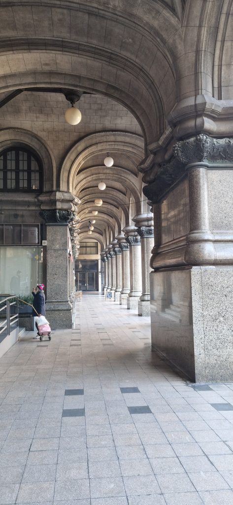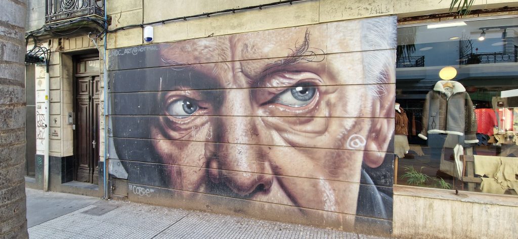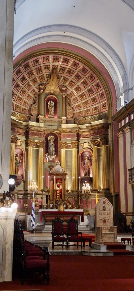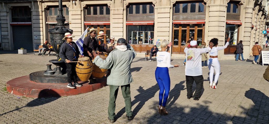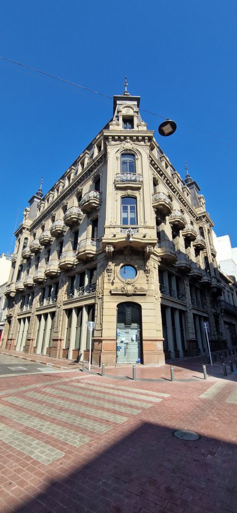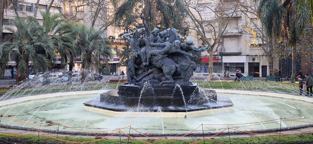 Herr Artigas ist in Uruguay ein Nationalheld und wird als „Vater der Unabhängigkeit Uruguays“ bezeichnet. Seine Denkmäler finden sich hier in jeder Stadt. Hier an diesem Plaza ist unter der Erde sein Mausoleum. Steht doch während der mehrstündigen Öffnungszeiten immer eine Ehrenwache! (Jochen hat gar nicht bemerkt, daß das lebende Männer waren 😊. Er dachte, das wären Puppen). Über dem Mausoleum ist wieder eine große Reiterstatue von Artigas. Hier an diesem Platz befindet sich auch eines der höchsten Gebäude Uruguays, das Palacio Salvo, in dem auch das Tango-Museum untergebracht ist. Es ist nicht wirklich schön, aber doch beeindruckend.
