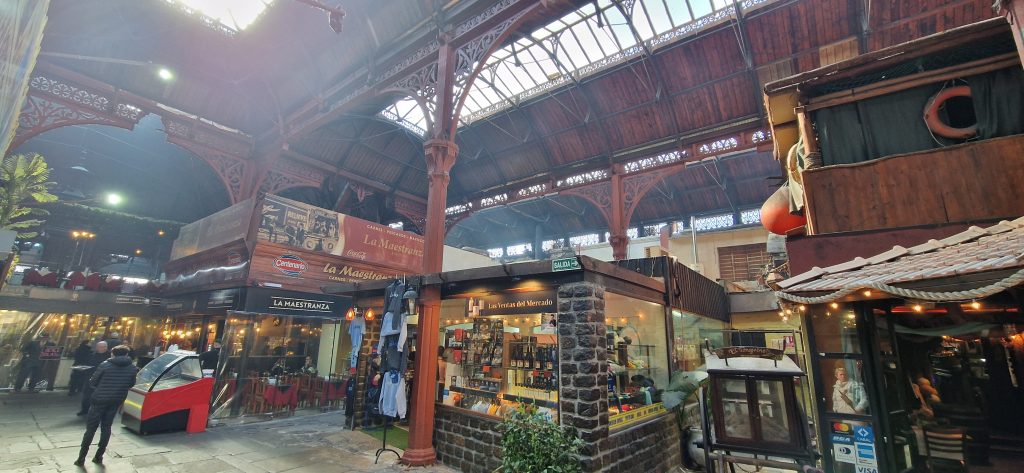 Wir sind dann kreuz und quer durch die Straßen und haben wieder viele wunderschöne alte Häuser gesehen. Manche toll hergerichtet und manche halt leider wieder dem Verfall überlassen. Wer etwas Kleingeld übrig hat, kann hier gerne investieren. Ein Muß für uns war dann der Mercado de Puerto. Wieder ein altes Gebäude mit viel Flair, in dem jetzt hauptsächlich (fast nur) Restaurants untergebracht sind. Auch wir haben uns hier eine Fleischportion gegönnt, da jeder sagt, daß sollte man da mal tun. Ja, was soll ich sagen? Es war lecker und sein Geld wert. Gut, daß wir hier waren.
