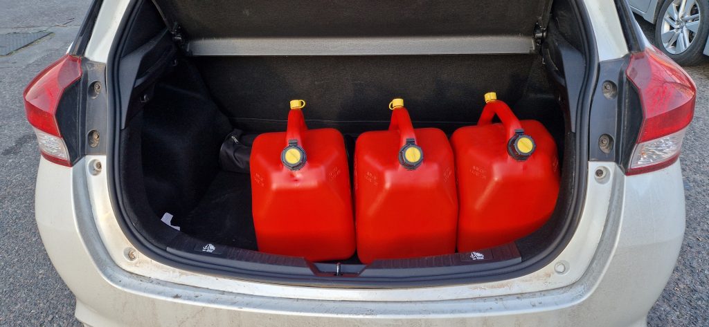 Auch wenn wir jetzt wieder am Boot zurück sind, war unser Tour noch nicht zu Ende. Wenn auch keine Besichtigung anstand, so war noch Shopping angesagt. Für unsere Weiterreise nach Patagonien benötigt es noch ein paar lange Leinen, um sich damit an Land zu verspannen. Hierfür gibt es laut unseren Informationen eine gute Anlaufstelle in Mar del Plata, ein Küstenort ca. 450 km südlich von unserem Aktuellen. Die Überlegung war im Vorfeld, das Material bei einem Zwischenstopp mit dem Boot dort zu kaufen, oder aber jetzt wo wir den Leihwagen haben. Mit der Erkenntnis der letzten Besorgungen fiel die Entscheidung auf, „was wir haben, haben wir“, und falls wir es dort nicht bekommen, bleibt noch Zeit es vielleicht woanders zu organisieren. So haben wir dann uns erstmal in unserem Zuhause ausgeschlafen und bei einem der Bäckereien in der Stadt gemütlich gefrühstückt, die Vorräte am Boot waren ja erstmal nicht dafür aufgestockt. Start war dann schon gegen Mittag bis wir wieder zurück aus der Stadt waren, ein paar kleine Besorgungen inclusive, die auf dem Weg waren. Wieder der Vorteil von leeren Straßen, sind wir doch zügig aus der Stadt gekommen. Wir hatten für die Shoppingtour sowieso eine Übernachtung geplant, wir wissen ja mittlerweile wie es hier läuft. So sind wir dann noch vor Ladenschluss in Mar del Plata angekommen, „naja wir schauen halt mal gleich vorbei“, war unser Intension. Keine halbe Stunde später war der Einkauf schon erledigt, oh Wunder. Eine paar Kanister, die wir noch wollten, hatte dieser Laden zwar nicht, aber ein anderer gleich 100 m weiter, hätte diese, so deren Info. So sind wir dann noch gleich rüber gelaufen, der Laden hatte sogar noch offen. Wir erspähten auch gleich unser Objekt der Begierde, genau das, was ich gesucht hatte. Zwar nicht ganz billig, aber es waren halt genau die Dieselkanister, die ich mir vorgestellt habe. Drei Stück standen im Regal, ich wollte eigentlich vier. Einen Vierten hat er nicht und Besorgen kann er wohl auch keinen mehr – auch nicht bis Oktober, bis wir evtl. hier wieder mit dem Boot vorbeikommen. Dann packen wir halt die Drei mit ein, bezahlen und sind unter einer Stunde mit den Einkäufen durch, das ist Rekordverdächtig 😊. Es bewahrheitet aber wieder, was alle hier sagen, „Du bekommst hier alles, was vor Ort ist, nachbestellen ist nicht“. So sind wir froh, den Einkauf jetzt erledigt zu haben und nicht erst bei Ankunft mit dem Boot, wer weiß was oder eher was es nicht mehr bis dahin zu kaufen gibt. So haben wir dann beschlossen, die Übernachtung hier bleiben zu lassen und uns gleich wieder auf den Rückweg zu machen, gegessen wird dann Unterwegs irgendwo. Ankunft zurück an unserem Boot war dann gegen 23 Uhr. Mit unserer neuen Errungenschaft, den Kanistern, haben dann am nächsten Tag noch einen kleinen Pendelverkehr zwischen Tankstelle und Boot eingerichtet und unsere Dicke mit 600 Liter frischen Diesel befüllt. Mit drei Kanistern á 20 Liter, eine tagesfüllende Aufgabe. Für jede Fahrt zur Tanke bis zum Umfüllen in den Tank ist etwa eine Stunde vergangen. Am Abend (und am nächsten Tag) wußten wir (bzw. der Rücken) aber, was wir geleistet haben. Tags darauf mussten wir dann auch den Leihwagen zurück bringen, mit 3900 km mehr auf der Uhr.