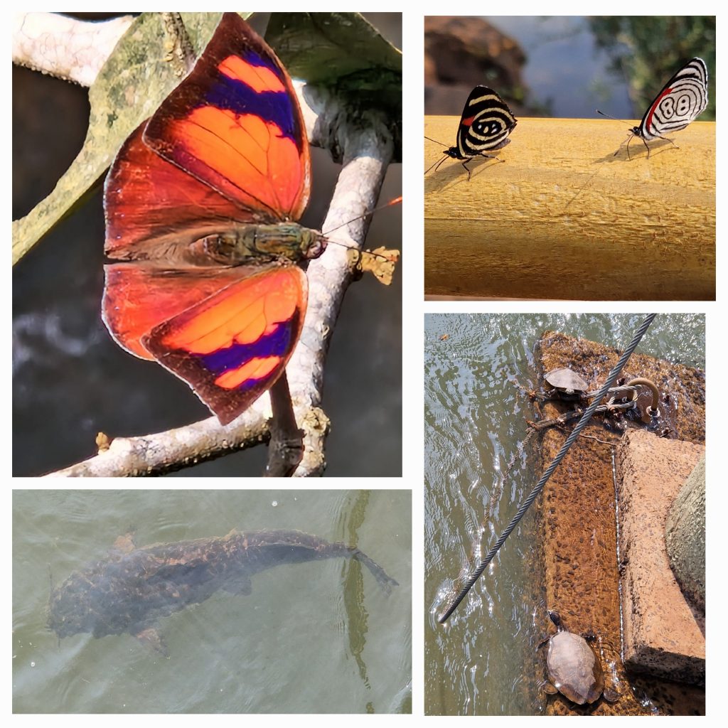 Hier auf argentinischer Seite kann man viele verschiedene Strecken ablaufen und sieht dabei auch sehr viel Flora und Fauna, da alles von dichtem Wald umgeben ist. Unwahrscheinlich viele Schmetterlinge tummeln sich hier, die sich auch gerne auf uns niederlassen. Wir haben hier auch Fische, Schildkröten, viele Vögel – einen Tukan!, blühende Bromelien und viele andere schöne Pflanzen und Blüten entdecken können. Einfach eine atemberaubende Gegend.