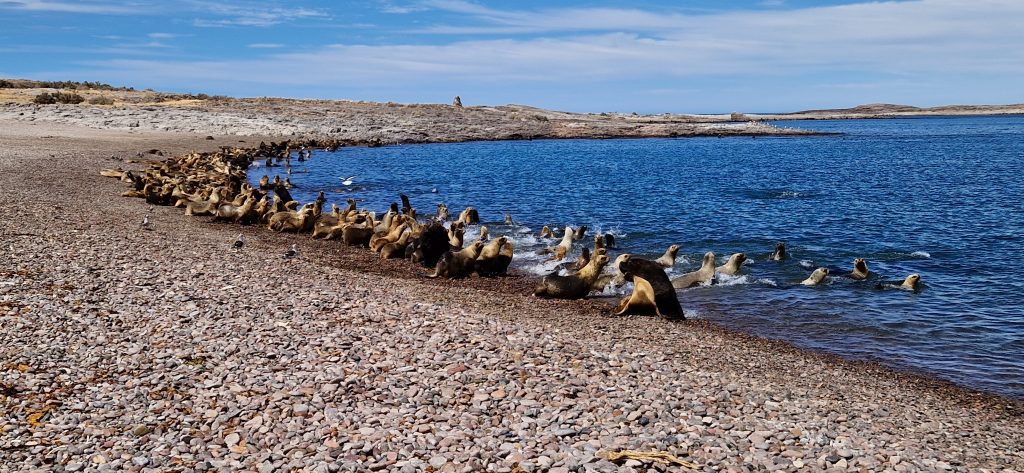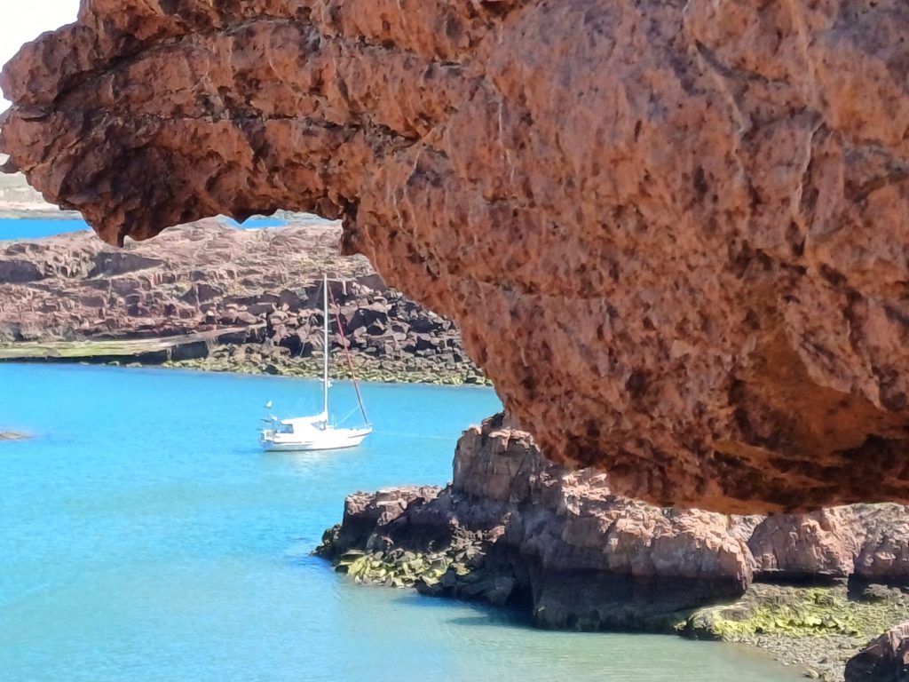 Wir haben noch einen weiteren Versuch unternommen, eine weitere Tour zu gehen. Tja, da waren wir falsch im Timing. Da sind wir bei Niedrigwasser losgefahren und hatten keine Chance, irgendwo ans Ufer zu kommen und unseren Fred sicher alleine zurück zu lassen. Also sind wir bei dieser Tour dann einfach noch mal mit Fred die Bucht abgefahren und auch nochmals raus in die „Outer-Bay“. Sehr beeindruckend zu sehen, wie die schmale Durchfahrt bei Niedrigwasser aussieht. Kaum zu glauben, daß wir da durchgefahren sind.