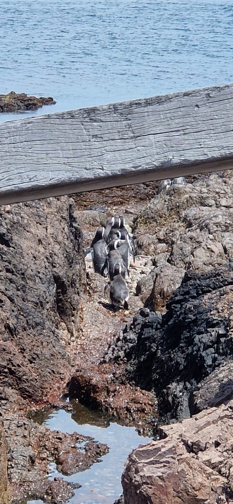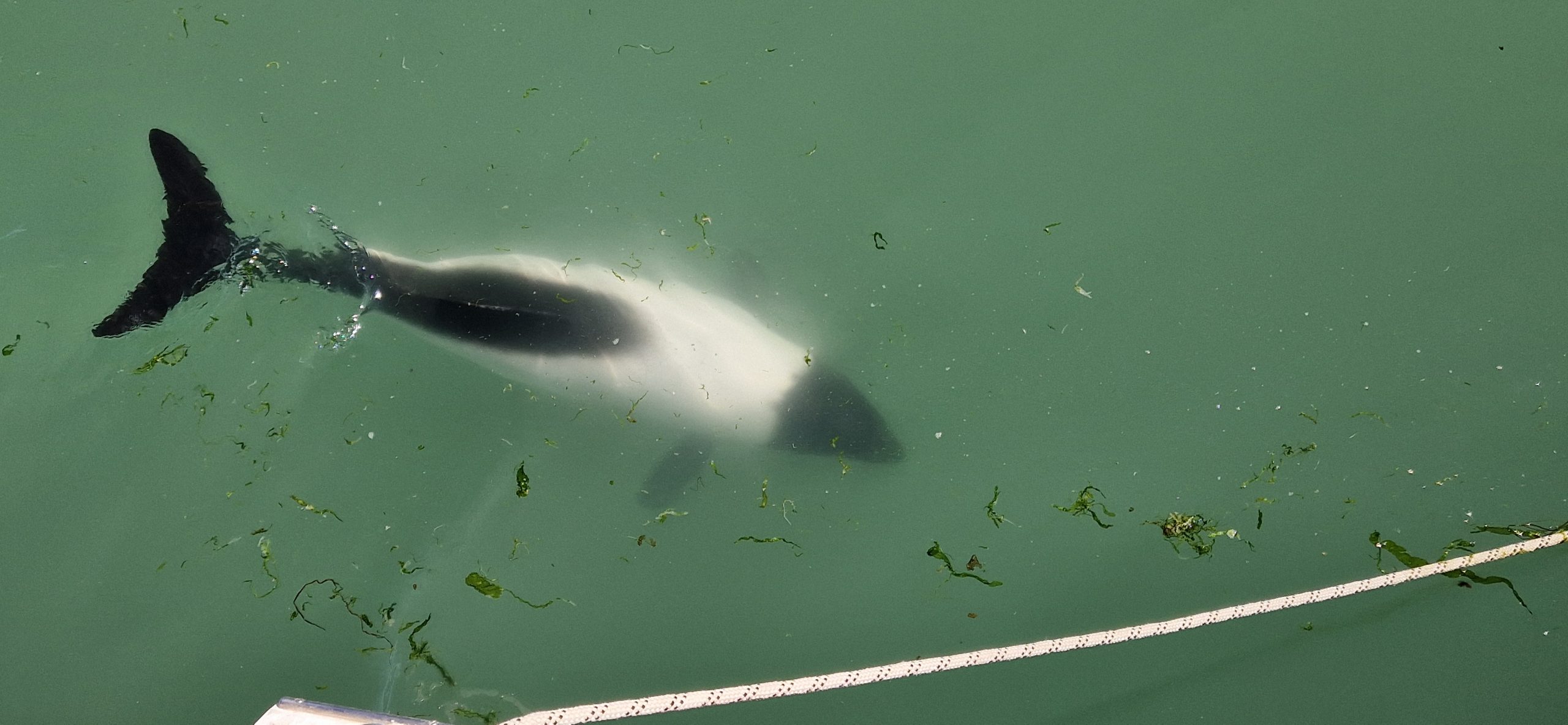 Der Skipper hat den Motorlauf genutzt um wieder einmal unseren Wasservorrat aufzufüllen. Aber kaum verschwindet er unter Deck, um den Wassermacher zu starten, muß ich ihn schon wieder rufen….“Walblas“. Da kommt er natürlich gleich wieder nach oben. Beim nächsten Anlauf muß ich ihn schon wieder rufen, da Delfine Pirouetten springen. Bevor jedoch der Foto klar war, war das Spektakel auch wieder rum – die werden halt auch müde…. Wale, Delfine, Pinguine – was will man mehr?