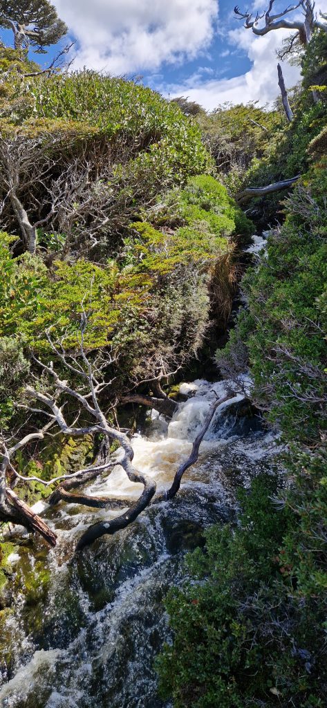Bis zum Wasserfall haben wir es natürlich nicht geschafft – das wäre eine Mehrtagestour bei diesem Vorankommen bzw. müssten wir uns ein Schlauchboot mitbringen, um über den See zu fahren. Selbst an dessen Ufer sind wir nicht wirklich rangekommen.