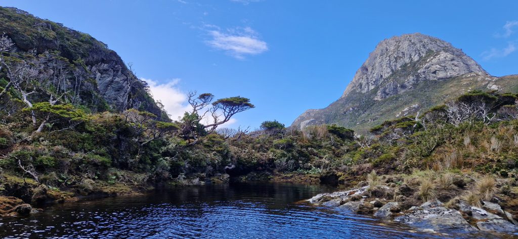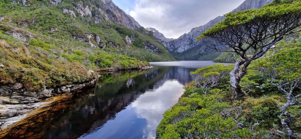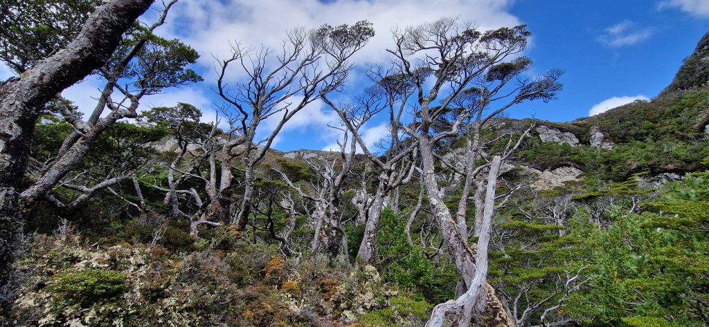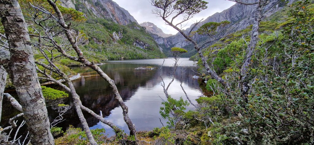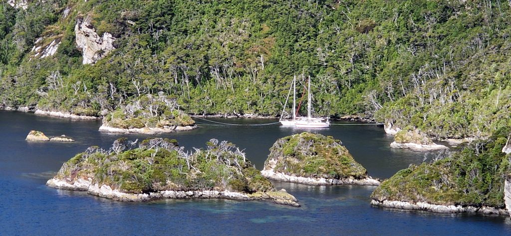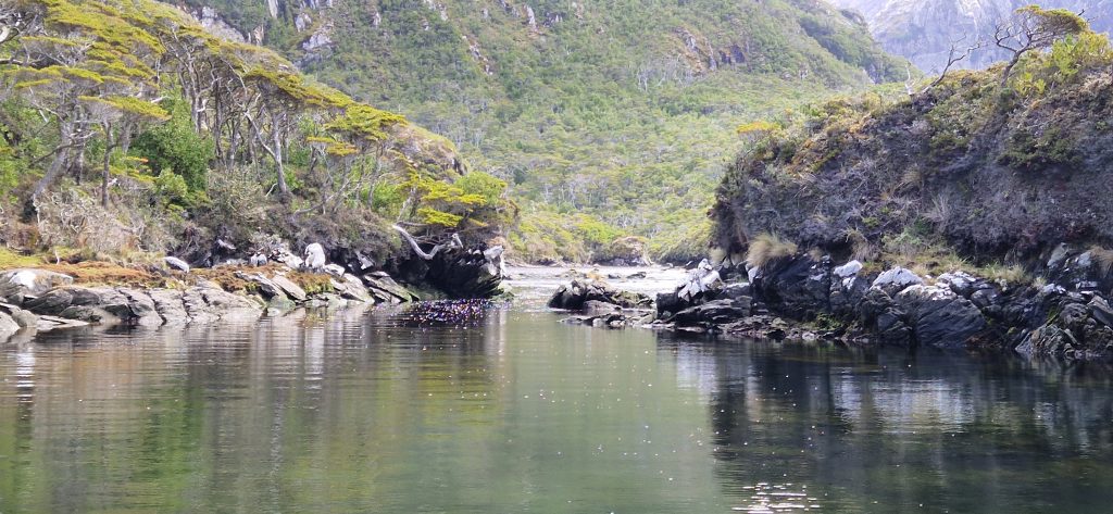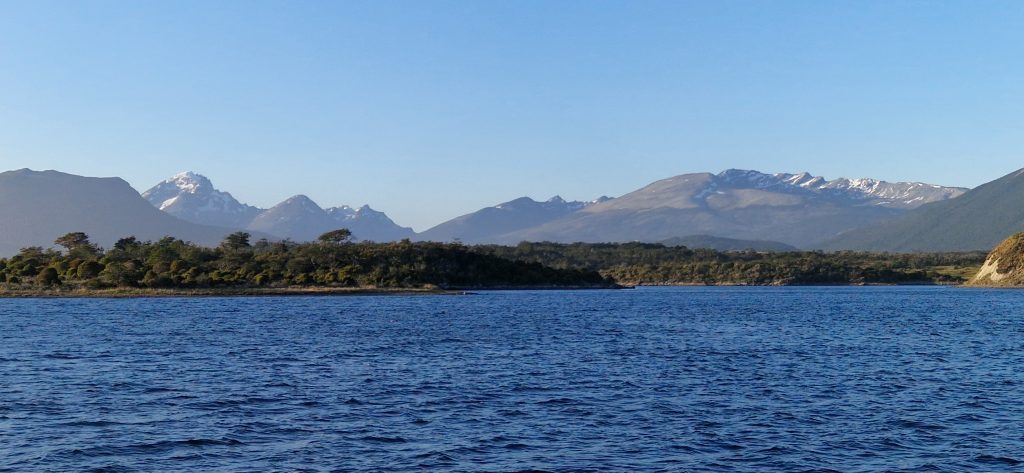 Im Beagle Kanal hatten wir dann meist Wind von vorne, aber in einem dermaßen ständigen Wechsel von Windrichtung und Windstärke, daß wir nur motort sind. Wir hatten uns im Vorfeld mehrere Optionen an Ankerplätzen ausgesucht. Nur die passten jetzt so gar nicht mehr zur aktuellen Windrichtung, die so ganz anders war als die Vorhersage. Also ganz schnell nachschauen, welcher Ankerplatz denn einigermaßen geeignet ist und diesen angesteuert. Um 18 Uhr fiel dann unser Anker bei Winden über 20 Knoten – wir lagen sicher und ruhig. Der Wind lies dann auch nach und sogar die Sonne bemühte sich noch einmal aus ihren Wolken. Was für eine Natur!!!