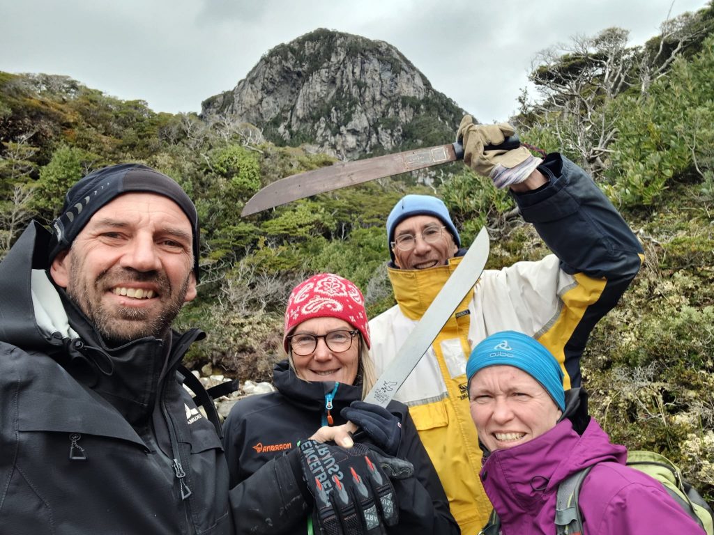 Ausgerüstet mit Macheten und Verpflegung sind wir zu viert in unseren Fred und haben einen Zugang zum Land gesucht. Wir wollten versuchen, den Weg Richtung Wasserfall und See einzuschlagen, was hier nicht so einfach ist. Die Büsche und Sträucher wachsen sehr dicht. Man läuft auf einer dicken Schicht Moos und sinkt bei jedem Schritt etwas ein. Der gesamte Untergrund ist feucht – kein Wunder, hier regnet es häufig. Und man kann es kaum glauben, wenn man das Wetter hier sieht: es gibt unwahrscheinlich viele verschiedene Pflanzen, die ihre Blüten ausbreiten. Jetzt ist hier alles in den Startlöchern. Der Sommer ist kurz und für uns gefühlt ziemlich kühl. Ist die Sonne da und kein Windhauch zu spüren, dann fühlt es sich auch wie Sommer an.