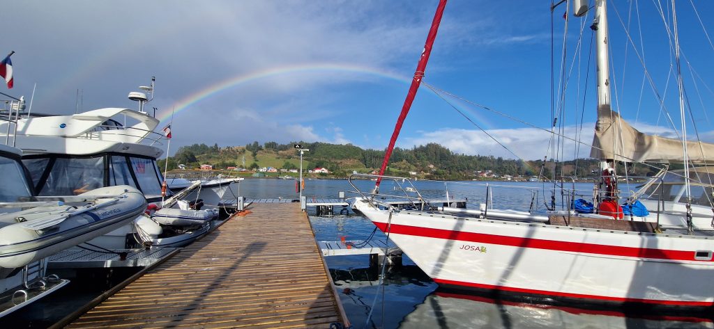 Am Montag hieß es dann „Anker auf“ für die letzte Etappe in Patagonien. Heute laufen wir in Puerto Montt ein, wo wir in der Marina Club Nautico Reloncavi unseren Liegeplatz gebucht haben. Die Überfahrt verlief problemlos mit ordentlich Schiffsverkehr außenrum und so konnten wir 3 Stunden später unsere Ankunft über Funk mitteilen. Am Steg wurden wir von Jorge, dem Hafenmeister des Clubs begrüßt, der uns beim Festmachen half.