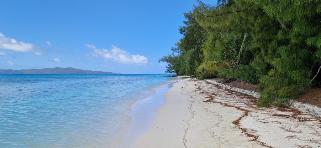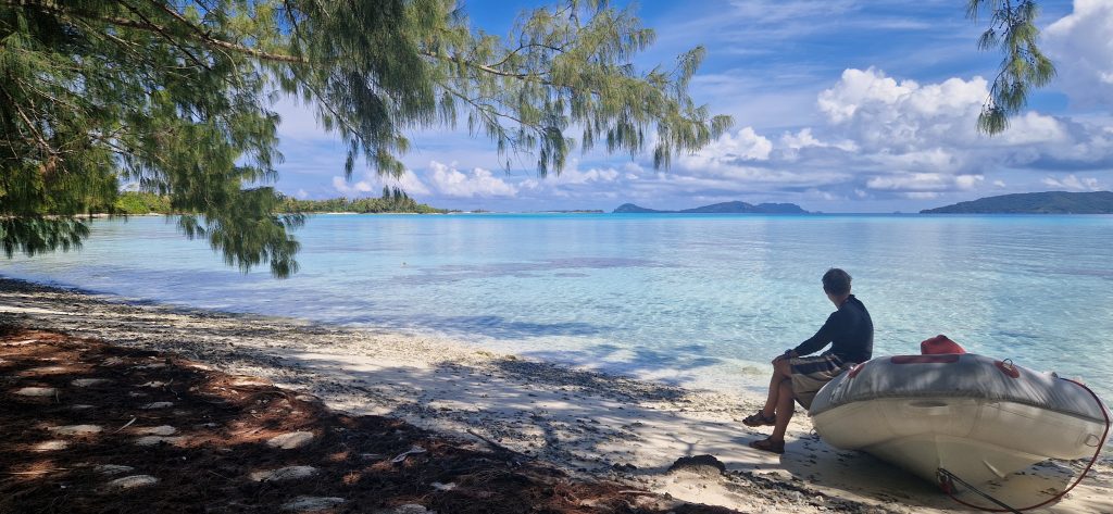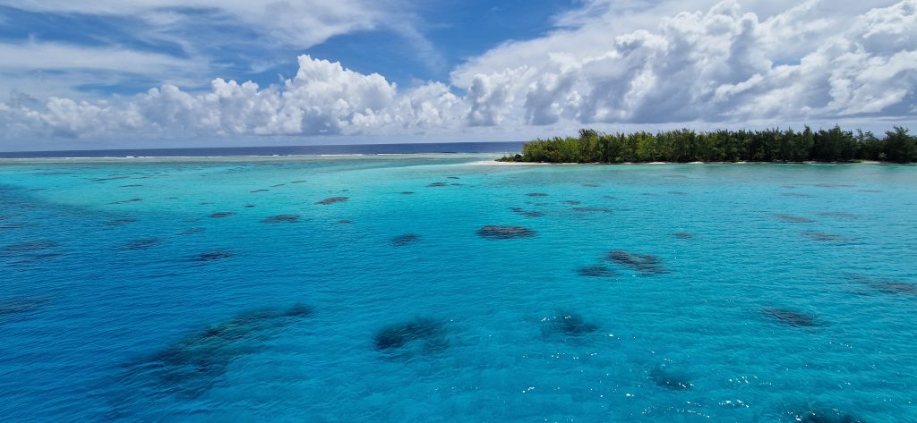 Unser nächster Ankerplatz war ganz im Norden des Atolls am Motu Puaumu. Ein toller Ort. Wirklich flach, die Insel voller Vögel und Pflanzen und ein toller Schnorchelspot. Und keine Menschenseele. Ab 18 Uhr ist es hier ja dunkel – und ich meine dunkel. Nur die Sterne, der Mond und sonst nix.