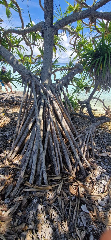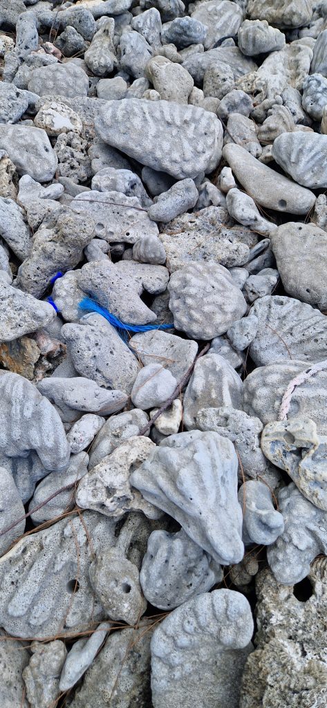 Es ist faszinierend zu beobachten, wie auf die Außenseite das Atolls die Wellen aufschlagen. Entsprechend sind diese auch voll mit toten, aufgeworfenen Korallen und vielen anderem, auch Müll. Man kann hier noch total gut die Strukturen der einzelnen Korallenarten erkennen. Die Inseln sind voll mit Seevögeln, die hier brüten. Auch unter Wasser brummt das Leben an den hier „Bommies“ genannten Korallenblöcken. Sind diese für uns beim Ankern eher ein Problem, weil wir diese ja nicht in unserer Kette haben wollen a) wollen wir uns nicht festfahren und b) wollen wir ja auch nichts kaputtmachen.