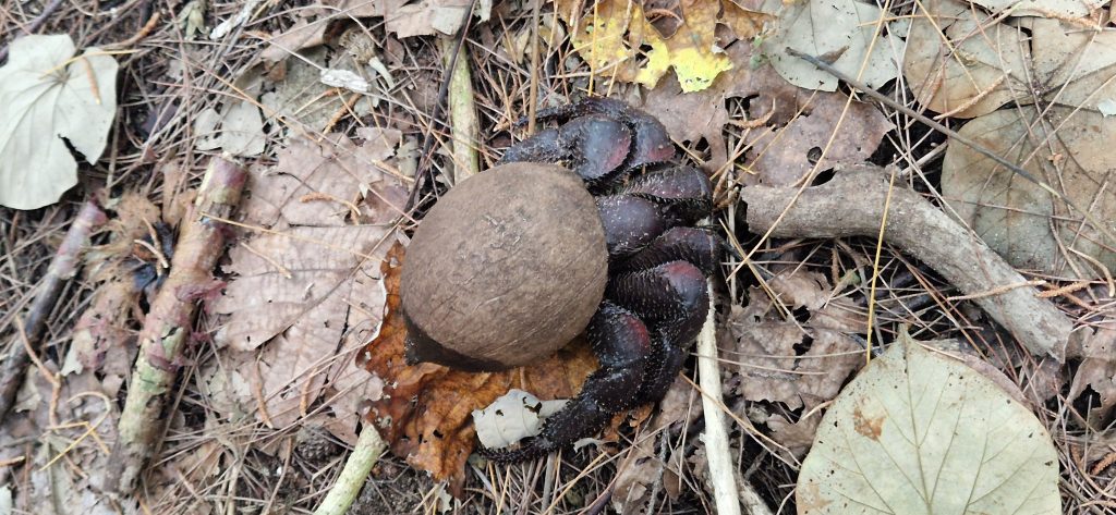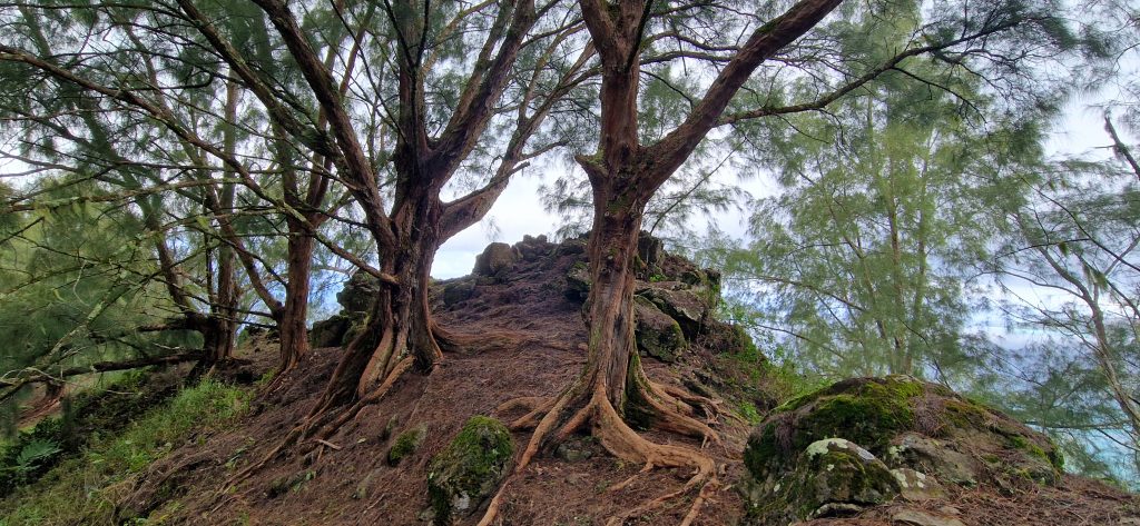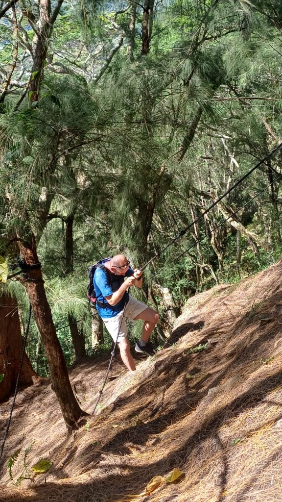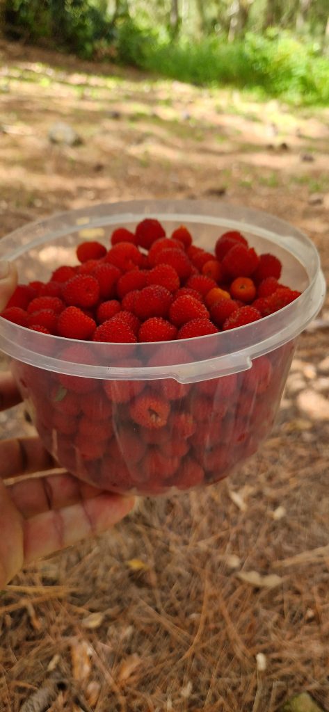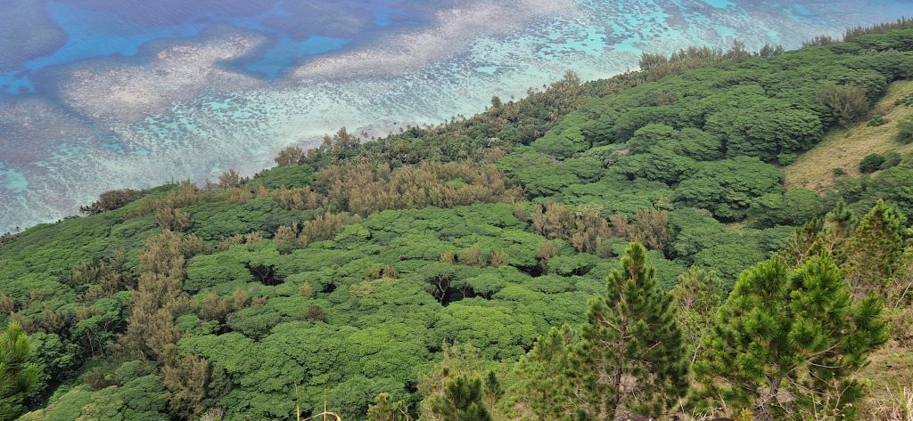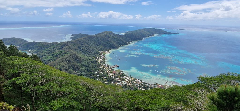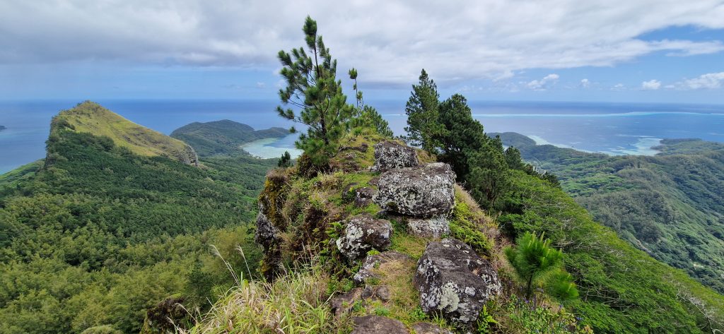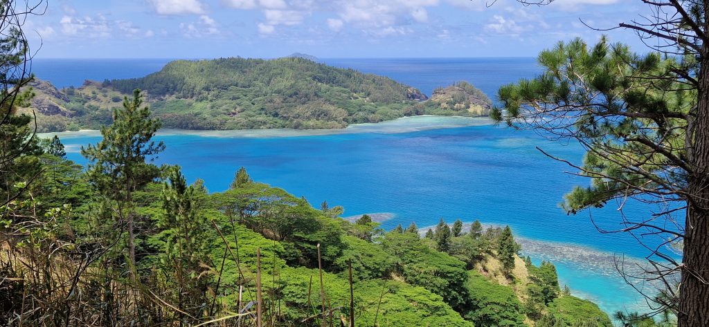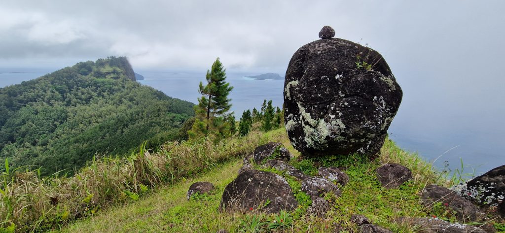 Hier auf Mangareva kann man einige Wanderungen machen. Zur Eingewöhnung sind wir zunächst auf dem Bergkamm direkt am Ort entlanggelaufen. Die höchste Erhebung ist der Mont Duff, 441m hoch. Diesen haben wir natürlich auch schon bestiegen, vor allem auch, weil gerade Himbeersaison ist und der gesamte Berg voll mit Himbeersträuchern ist. Das war schon ganz schön anstrengend. Es ging ordentlich nach oben und das mit unserem ungeübten Seglerbeinen. Aber die Mühe hat sich gelohnt, die Schüssel war voll und der Ausblick natürlich atemberaubend.