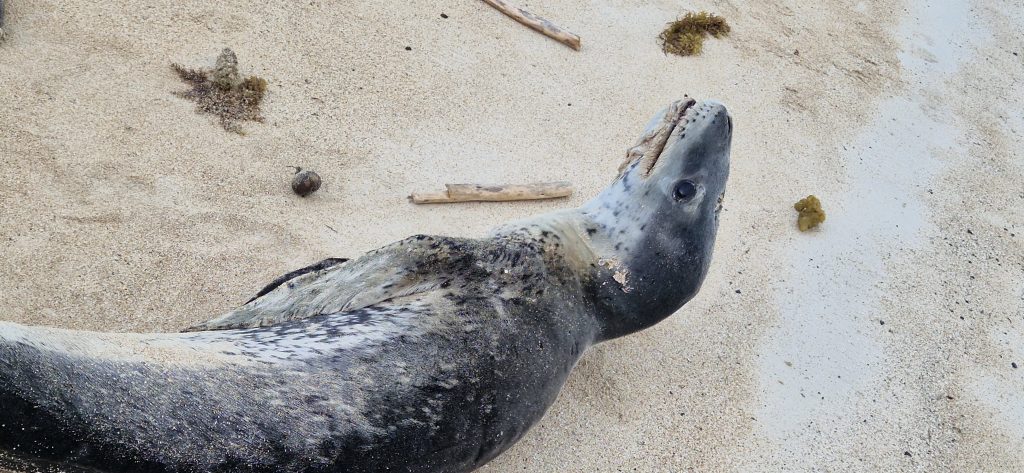 Eines noch: zwischenzeitlich ist hier am Strand auch ein Seeleopard aufgetaucht. Was ist das denn jetzt wieder? Ein Seeleopard ist eine Robbenart, die eigentlich in der Antarktis heimisch ist und wandert höchstens bis Australien. Der hier angekommene Kollege hat leider etliche Verletzungen und liegt nun am Strand. Zu Anfang hat sich noch die Gemeinde darum gekümmert und sogar auf Ihrer Facebook-Seite berichtet, aber nun liegt der arme Geselle da am Strand und wird wohl über kurz oder lang hier verenden. Wie er hierher kam? Tja, da kann man nur spekulieren. Ich tippe auf Beifang in einem Netz der großen Fischfangflotten, der dann „entsorgt“ wurde. Das ist leider auch Natur. Ein paar Tage später war er dann weg… Vielleicht hat er sich ja auch nur erholen müssen und zieht jetzt wieder munter Richtung Antarktis.