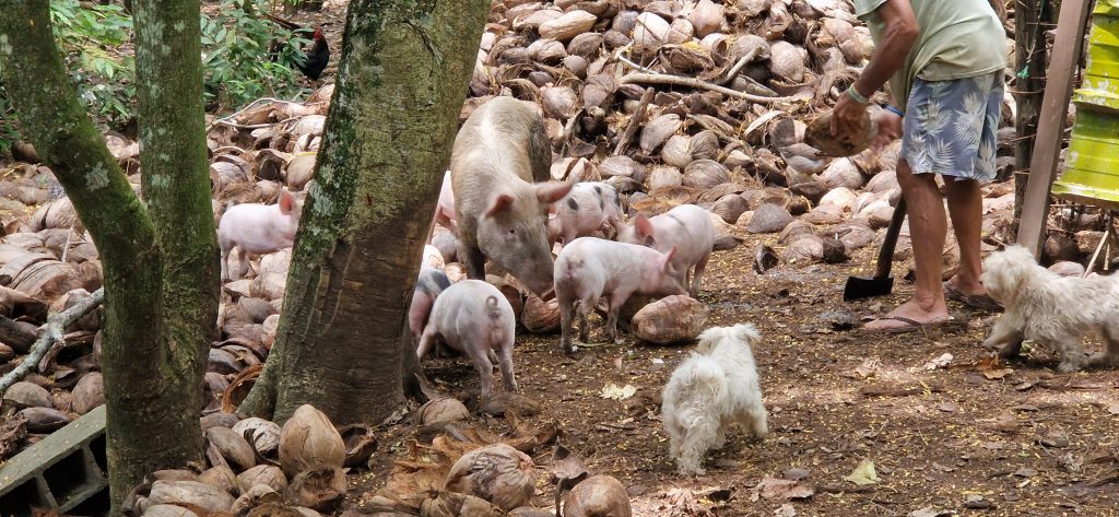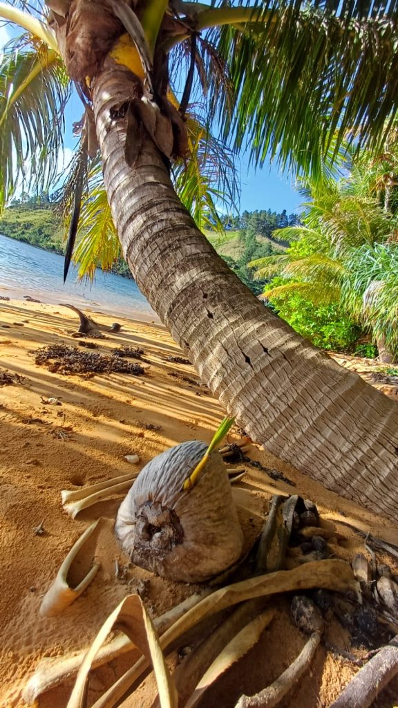 Wir sind ja gleich mal an Land gegangen und haben uns umgeschaut. Im Hafen gleich direkt einem knurrigen Fischer in die Arme gelaufen, der eigentlich sehr nett ist, wie sich später noch herausstellte. (ich verstehe ihn nur leider wieder gar nicht bei seinem Slang). An einem Garten unterhalten wir uns kurz mit Haki und Hannah, die gerade Ihr Feld mit Mais in reiner Handarbeit bestellen. Von Haki bekommen wir dann auch gleich eine kleine Staude Bananen geschenkt. Uns gefällt es hier!!