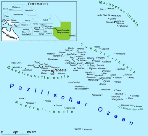 Französisch Polynesien (FP) besteht aus 5 Inselgruppen wie Ihr seht und wir werden – so der Plan – uns von unten rechts nach oben rechts über die Mitte nach links vorarbeiten. Und danach geht es immer weiter nach links – also Westen. Die Inselgruppen sind auch sehr unterschiedlich in Ihrer Erscheinung. Momentan befinden wir uns in einem Atoll, das sich aus einem Zentralvulkan gebildet hat und vulkanisches Gestein hat. (sehr scharfkantig!!) Die Tuamotus sind total flach und sind insgesamt 78 Korallen-Atolle. Die Marquesas im Norden sind Gipfel einer aus der Tiefsee aufragenden Gebirgskette vulkanischen Ursprungs. Hier gibt es keine umlaufenden Saumriffe wie bei den flachen Atollen.