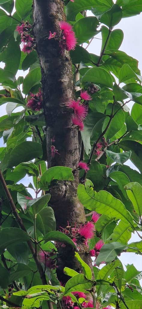 Die Natur hier ist wirklich unglaublich! Sämtliche Pflanzen, die wir von zu Hause als Zierpflanzen im Topf für’s Wohnzimmer kennen, stehen hier in voller Pracht in riesig!!! Habt Ihr schon mal einen Weihnachtsstern als Baum gesehen?!?!? Aber seht selbst in meiner kleinen Pflanze- und Früchtegalerie: