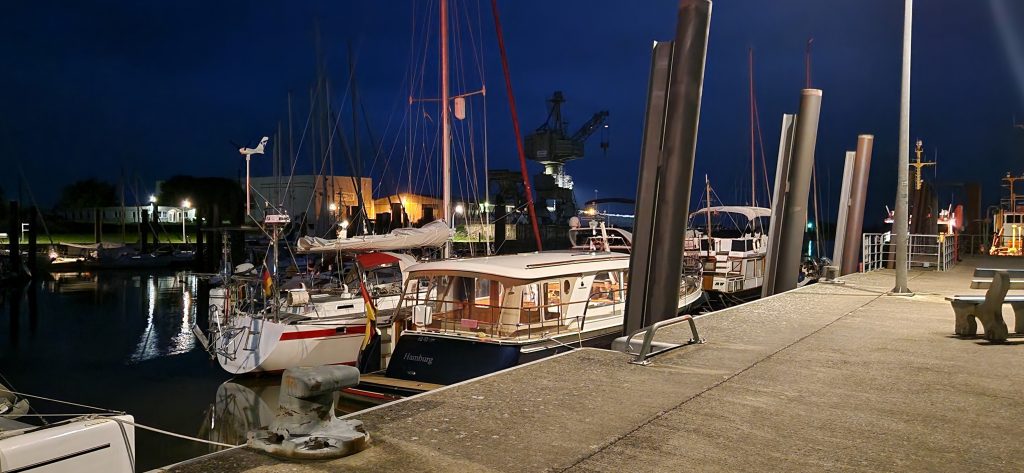 Ebenso mußten wir in Harburg in den Binnenhafen einschleusen. Ebenfalls mit Anmeldung, aber wird auf Bedarf bedient.