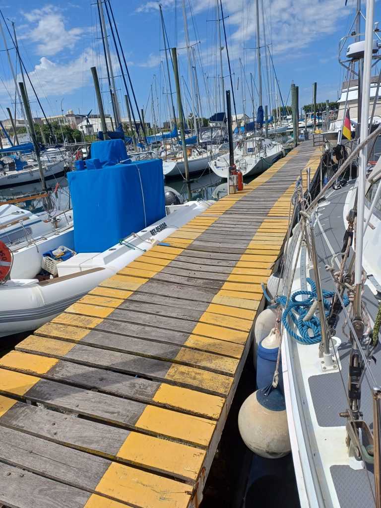 Sehr groß. Für mein Empfinden sind die Gassen zwischen den Boxen sehr eng für Boote, die nicht so gut manövrierbar sind (wie unsere Dicke). Wir haben daher direkt an der Einfahrt an einem „Notfallsteg“ angelegt. Da wir auch bei ordentlich Wind und Wetter eingefahren sind.