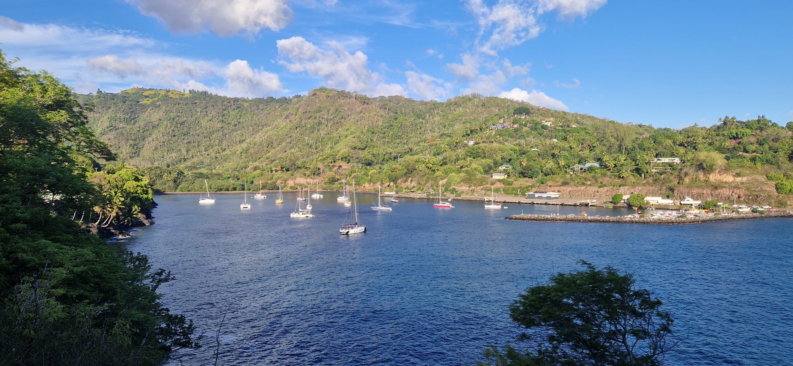 Wir haben die Zeit in Hiva Oa genossen, haben wir doch dort auch wieder unsere neuseeländischen Freunde Gordi und Juliet getroffen, haben Kevin aus Südafrika kennengelernt und…… wieder einmal ein deutsches Boot begrüßen dürfen. Michael und Andrea von der Gleda sind aus Panama angekommen. Ach…und unsere französischen Freunde von der Lazarina sind wieder aus ihrem Heimaturlaub zurückgekommen und haben ihr Schiff wieder fit gemacht und zu Wasser gelassen. So war das Patagonien-Dream-Team wieder beieinander. Schließlich haben wir einige gesellige Abende gemeinsam verbracht, sei es zum Sundowner oder auch zum gemeinschaftlichen Essen.